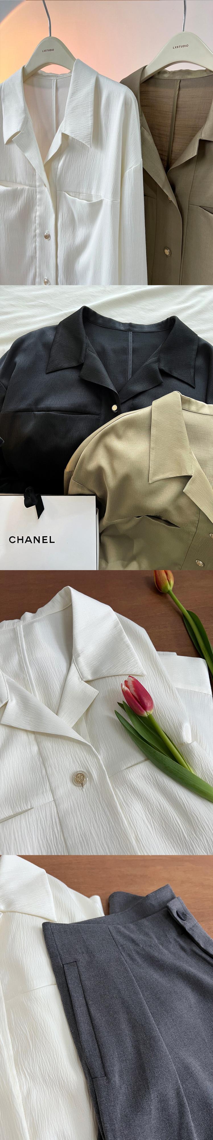 [EWQ] レディース シンプル シングルブレスト シャツ 無地 ラペル ブラウス 春 秋 ルーズトップ 16Y7185 スプリング 春物 オータム 秋物 ソリッドカラー