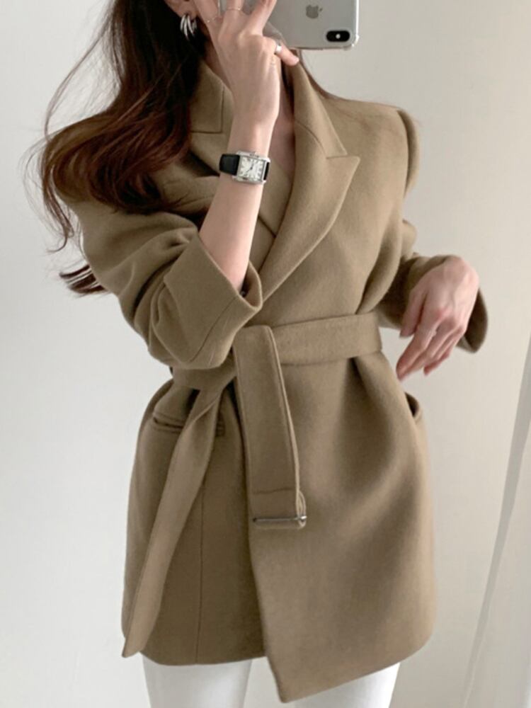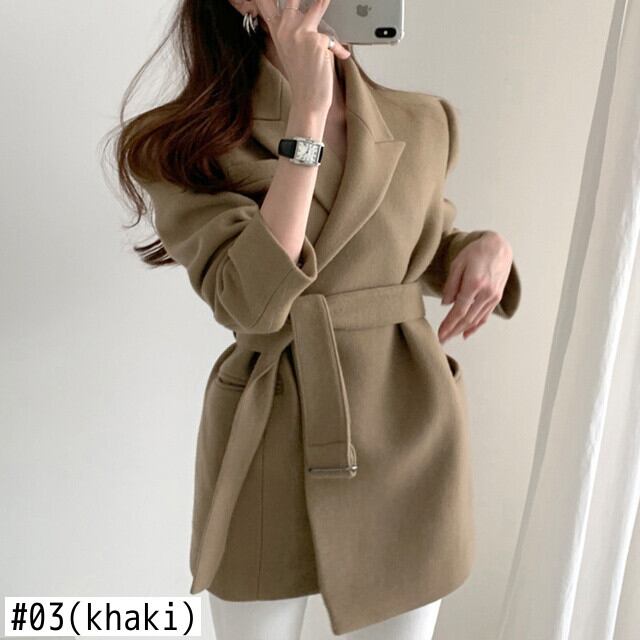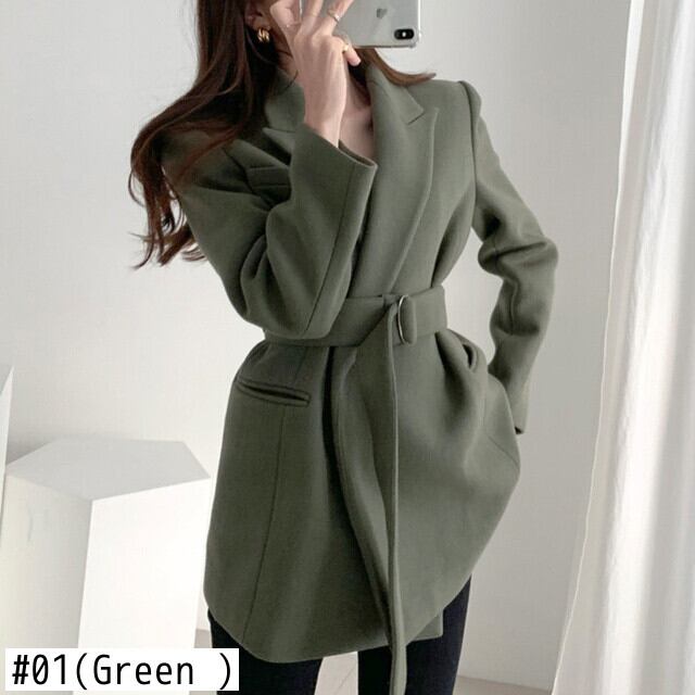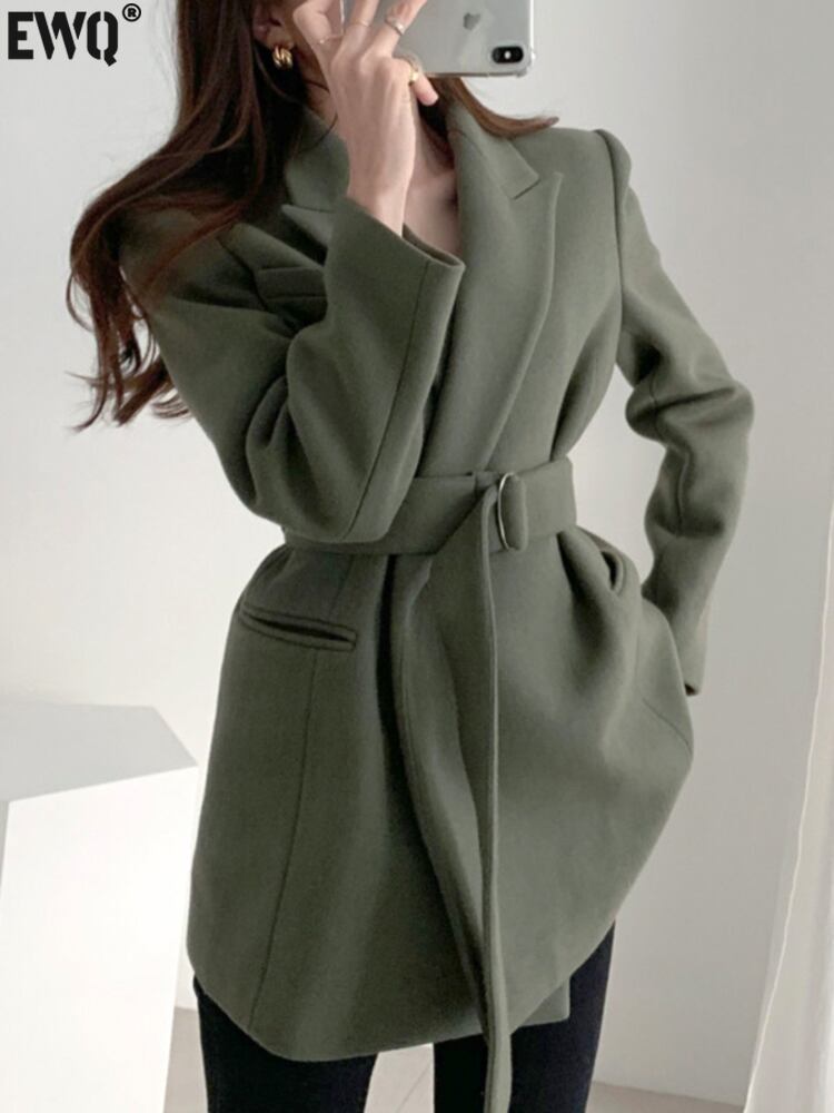 【EWQ】レディース スーツカラー 長袖 ウールコート 春トレンド レースアップ オープンステッチ ブレンドコート 16Y5851 ロング スプリング 春物