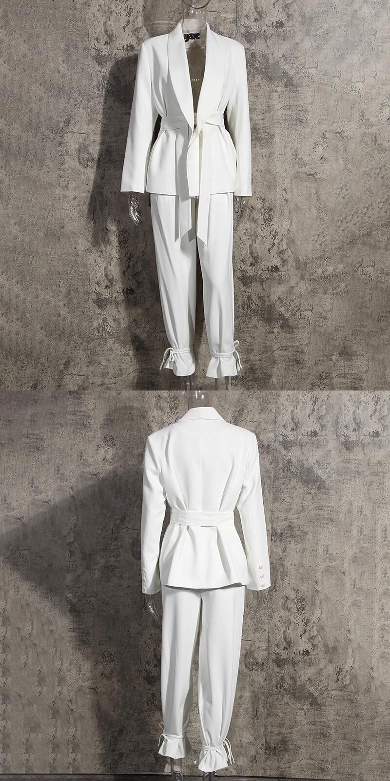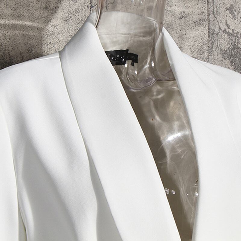 【EWQ】ブレザー ノッチネック 長口 尻尾 パッチワーク レースアップ 白 ジャケット レディース ロング ホワイト
