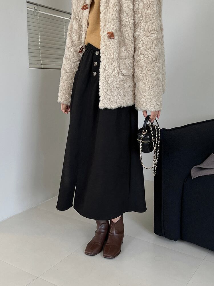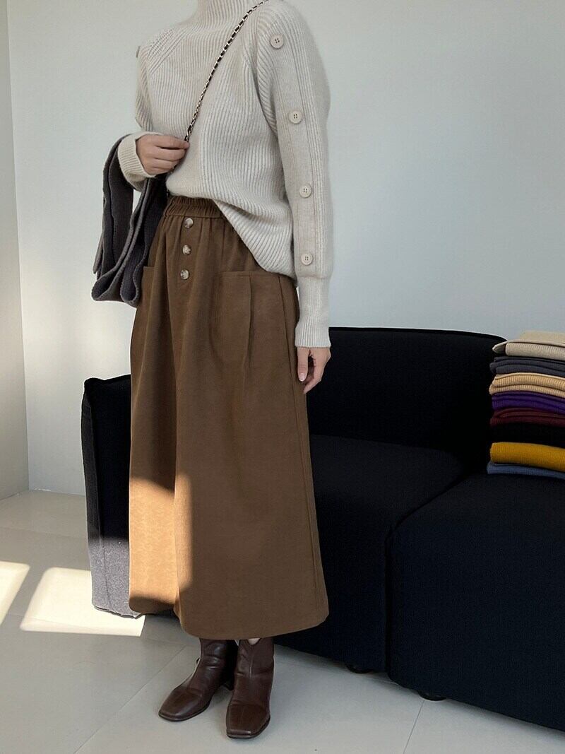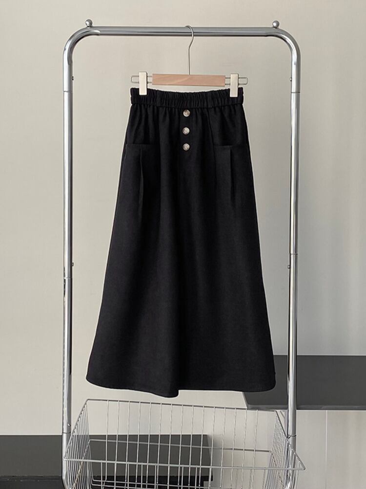 【EWQ】 レディース ウエストスリットスカート 春 秋冬 Aライン スリム ボタン プリーツスカート Y537 スプリング 春物 オータム 秋物 ウィンター 冬物