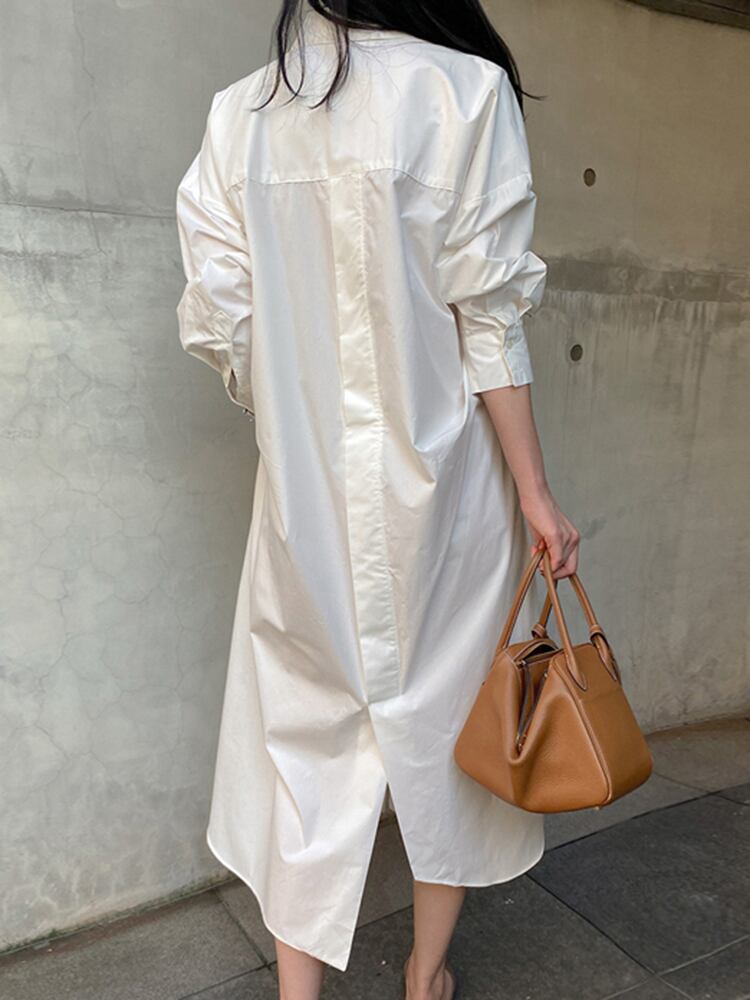 [EWQ] レディース バックスプリット シャツドレス シングルブレスト オーバーサイズ 長袖 マキシドレス 春 秋 Vestido 150 ロング スプリング 春物 オータム 秋物