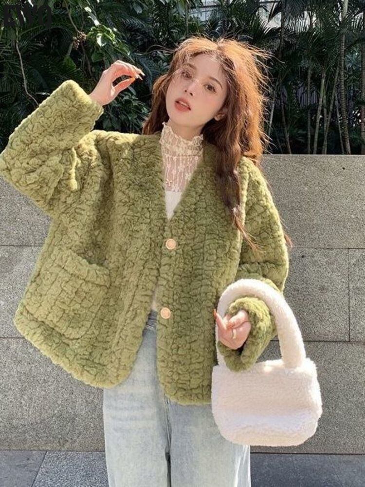 【EWQ】レディース ランヘアコート 秋冬 春 Vネック ゆったり ショート 長袖 中綿入り Y5406 ロング コットン スプリング 春物 オータム 秋物 ウィンター 冬物