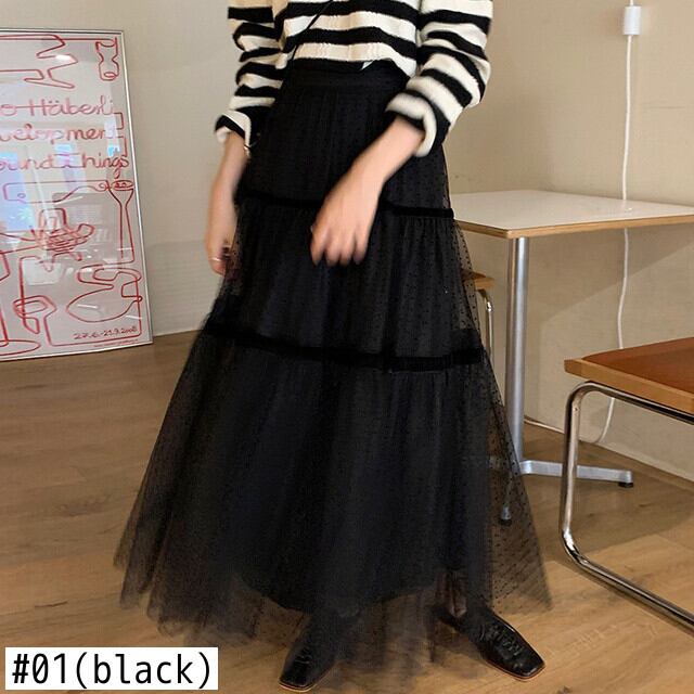 【EWQ】メッシュステッチ レディース 水玉スカート ウエストゴム オールマッチ ボトム 夏 エラスティック 伸縮 サマー 夏物