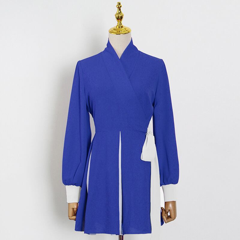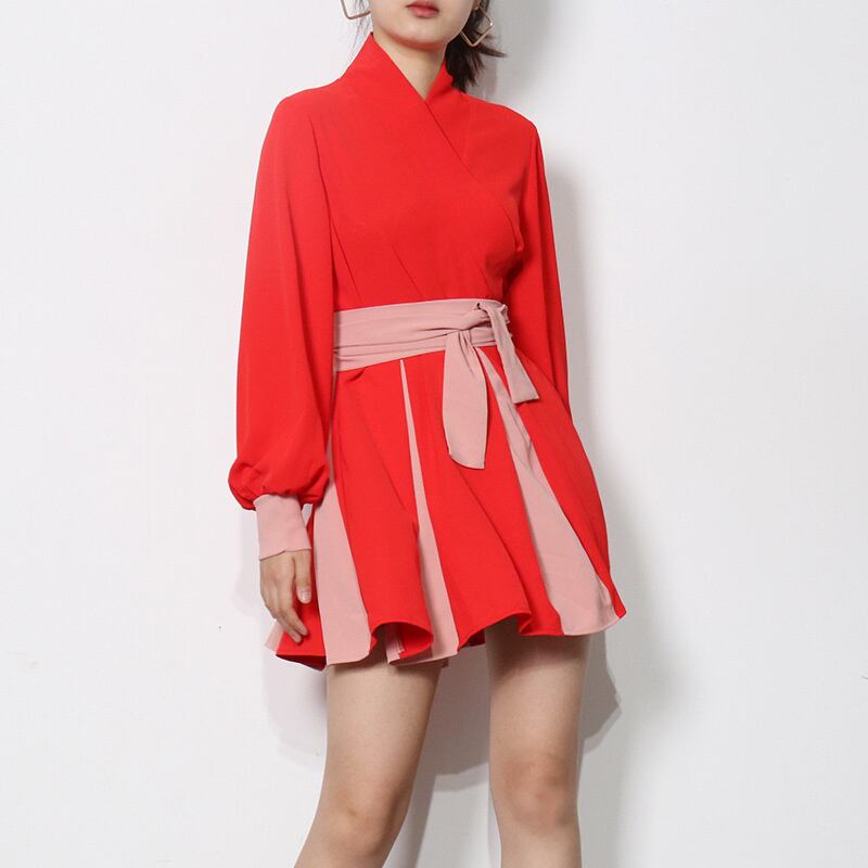 [EWQ] シック V ネック ステッチ システム ワイド ルーズ レッド ランタン スリーブ コート ジャケット レディース 秋 オーバーコート ランタンスリーブ オータム 秋物 Vネック