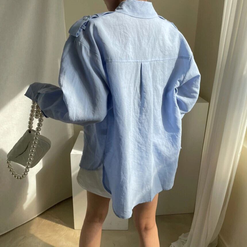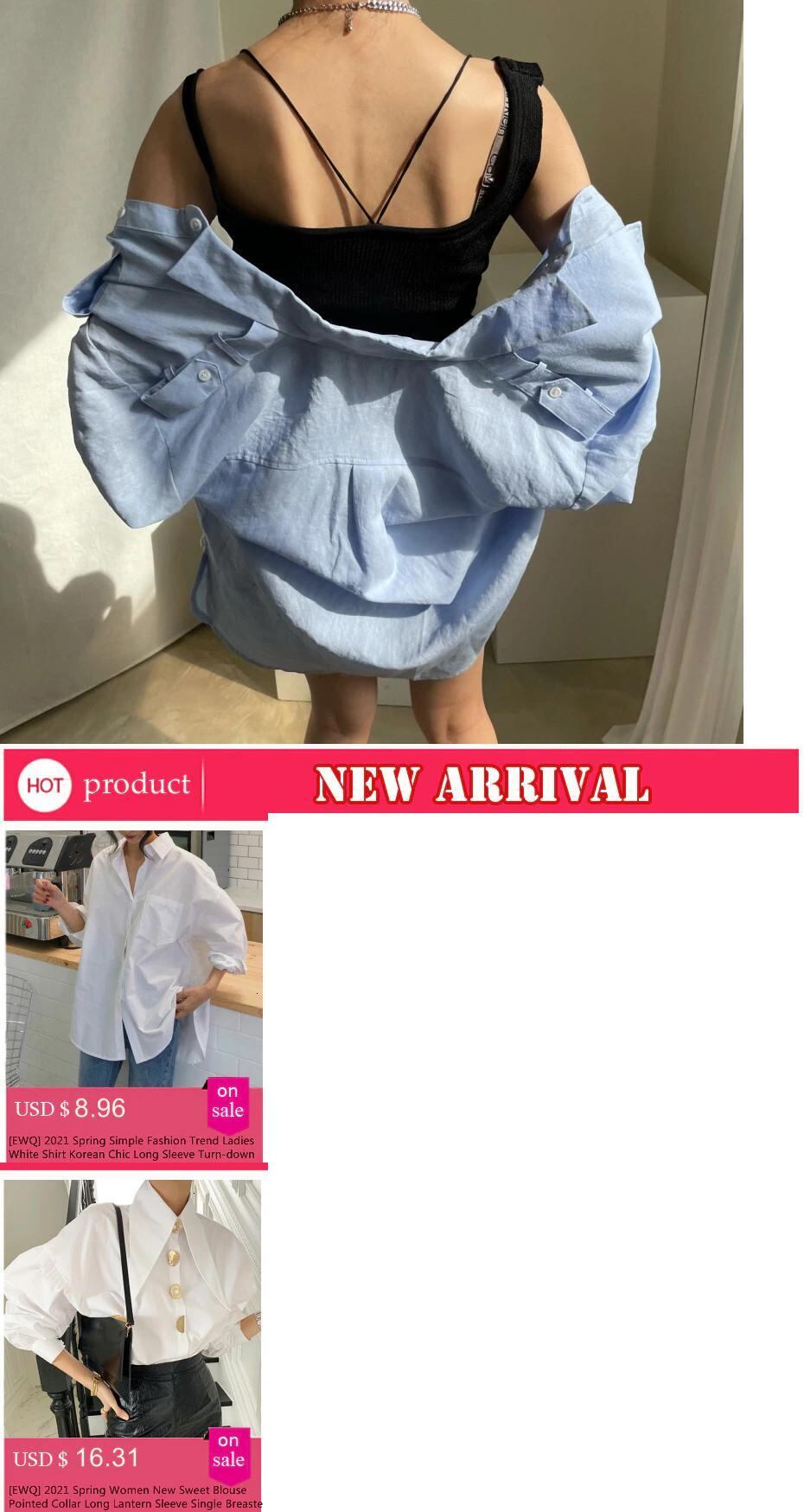 [EWQ] シック秋トレンド無地ラペルシングルブレストシンプル長袖シャツトップ 16E2314 ロング オータム 秋物 ソリッドカラー