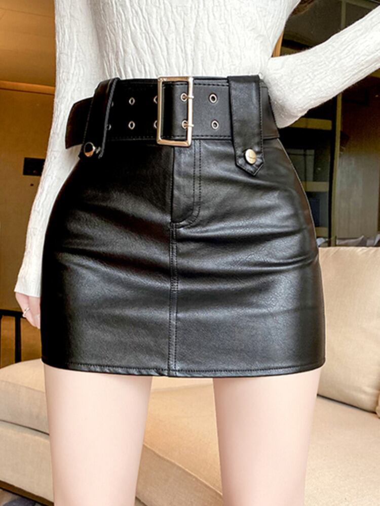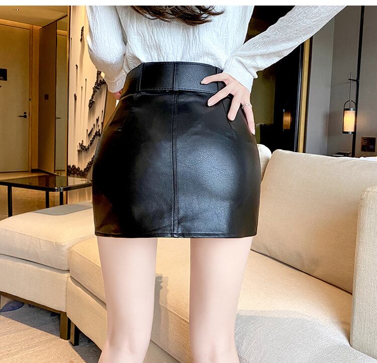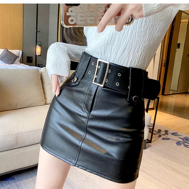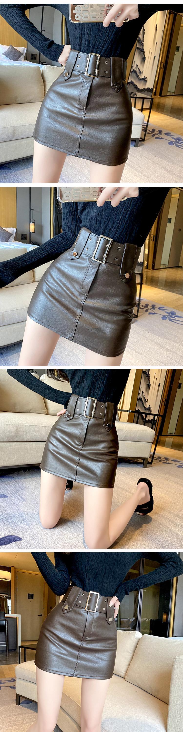 [EWQ] セクシー ヒップ レザー スカート PU スカート レディース ベルト ブラウン ミニ スカート 春夏 ファルダス スプリング 春物 サマー 夏物 ハーネス
