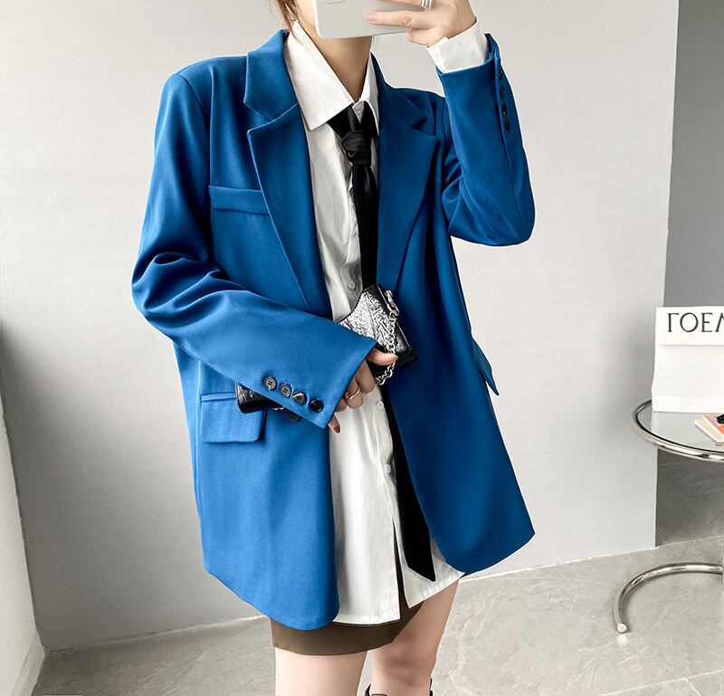 [EWQ] ミニマリスト長袖ブレザーコート春秋シングルブレストパーティースーツトップ 16Y59 ロング スプリング 春物 オータム 秋物