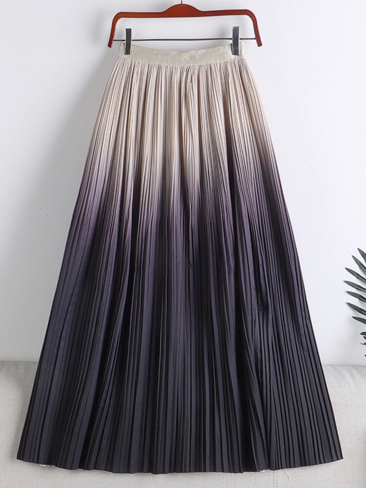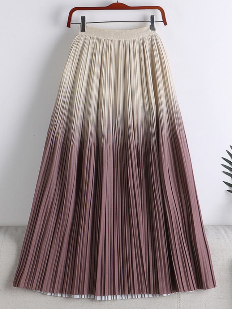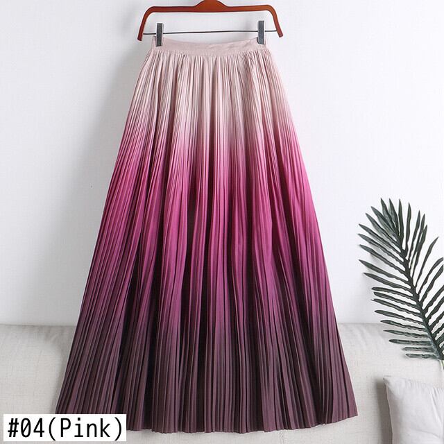 【EWQ】ウエストグラデーションカラープリーツスカート春秋ミドル丈Aラインスカート服 スプリング 春物 オータム 秋物