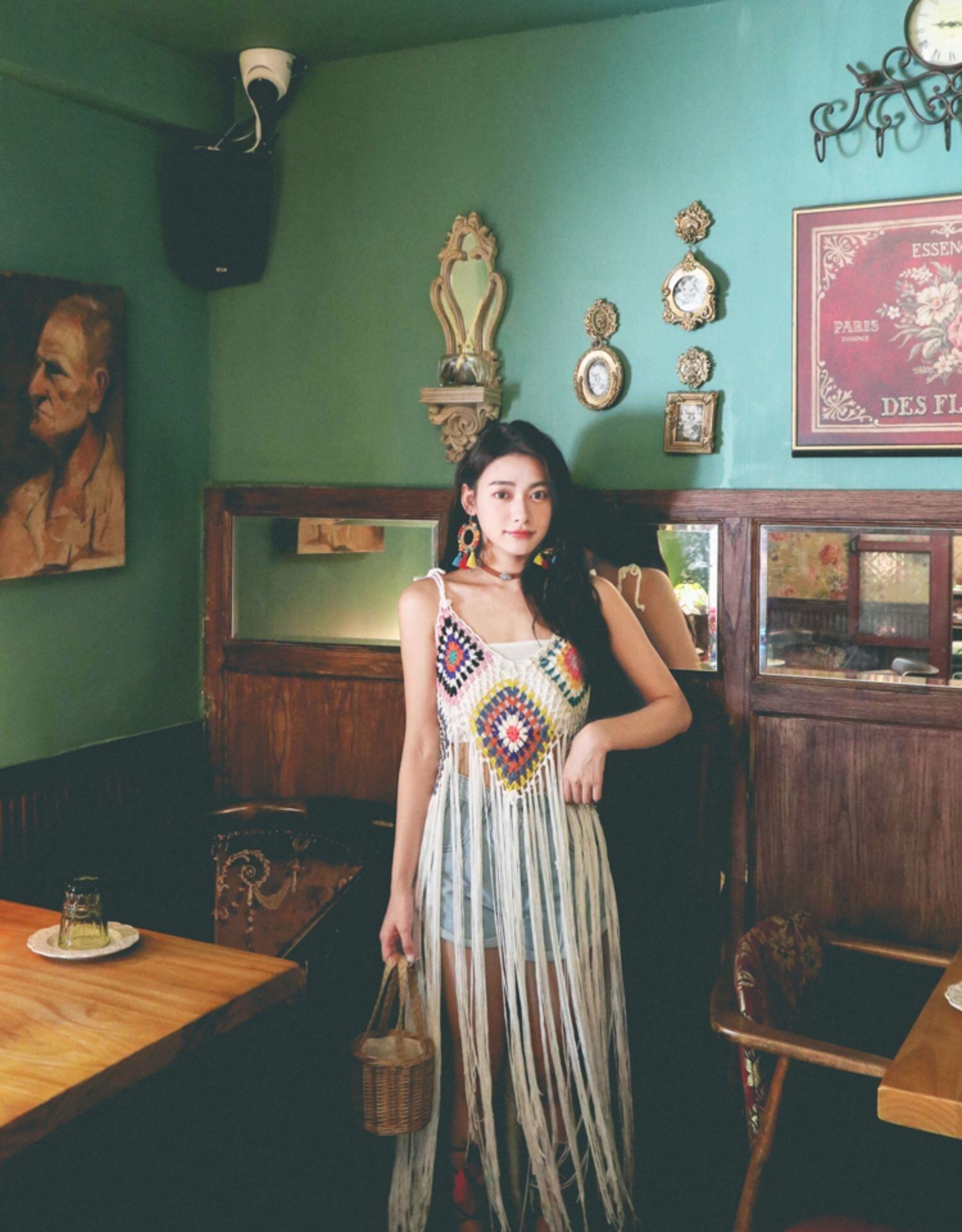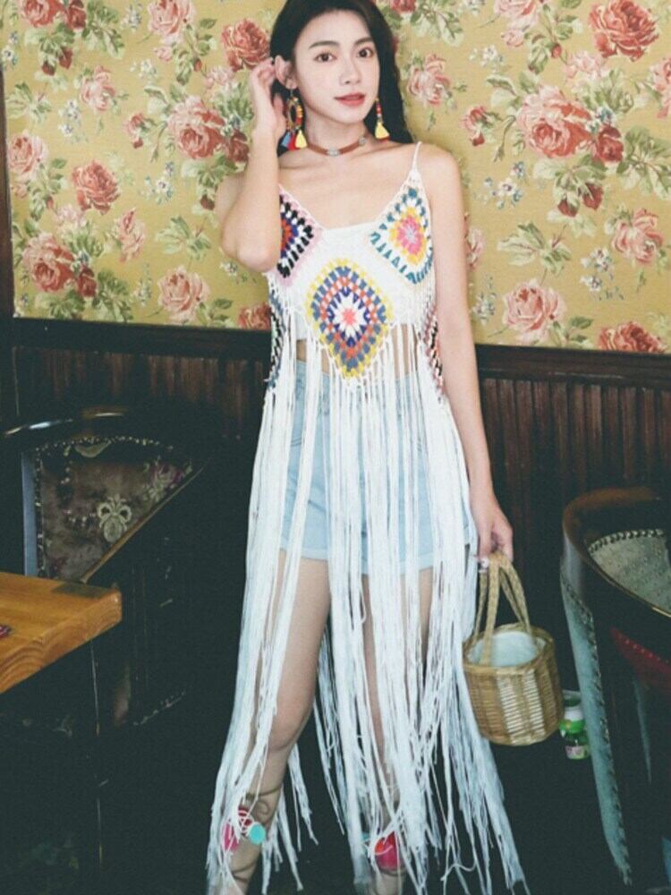 [EWQ] セクシーフラワー ニット中空ドレス ボヘミアン ビーチ ホリデー電話ノースリーブ ドレス春夏 Vestido 61 スプリング 春物 サマー 夏物 フラワーデザイン