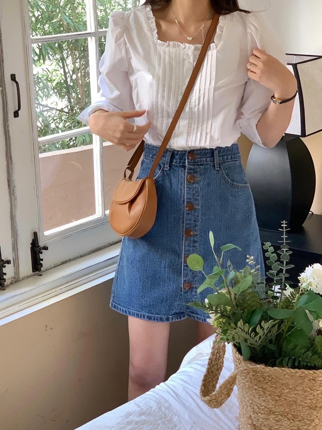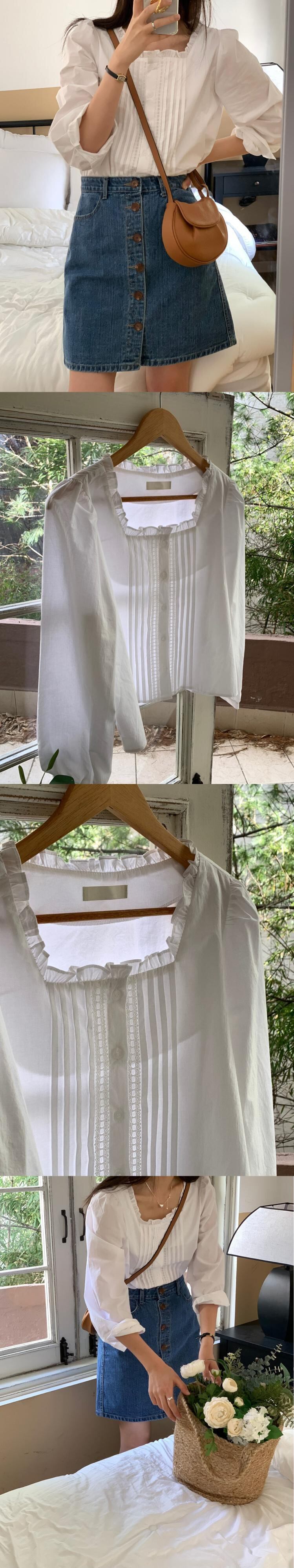 [EWQ] スクエアカラー フリルシャーリング シャツ レディース 長袖 春 秋 無地 ブラウス トップス Y6612 ロング スプリング 春物 オータム 秋物 ソリッドカラー スクウェア