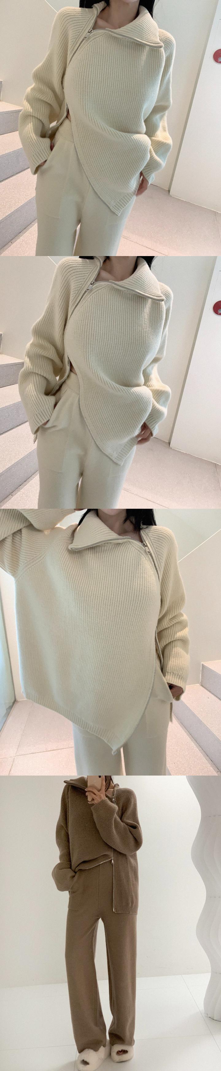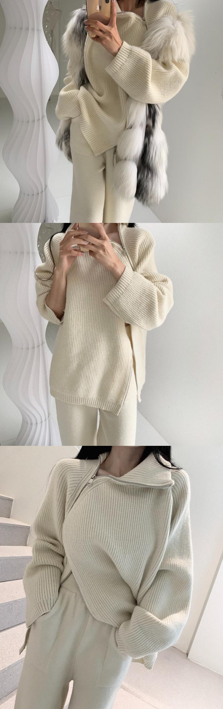 [EWQ] 長袖 イレギュラーファスナー スプライシング プルオーバー レディース セーター 春トレンド あったか ニット キレイめ トップス 16Y5805 ロング スプリング 春物
