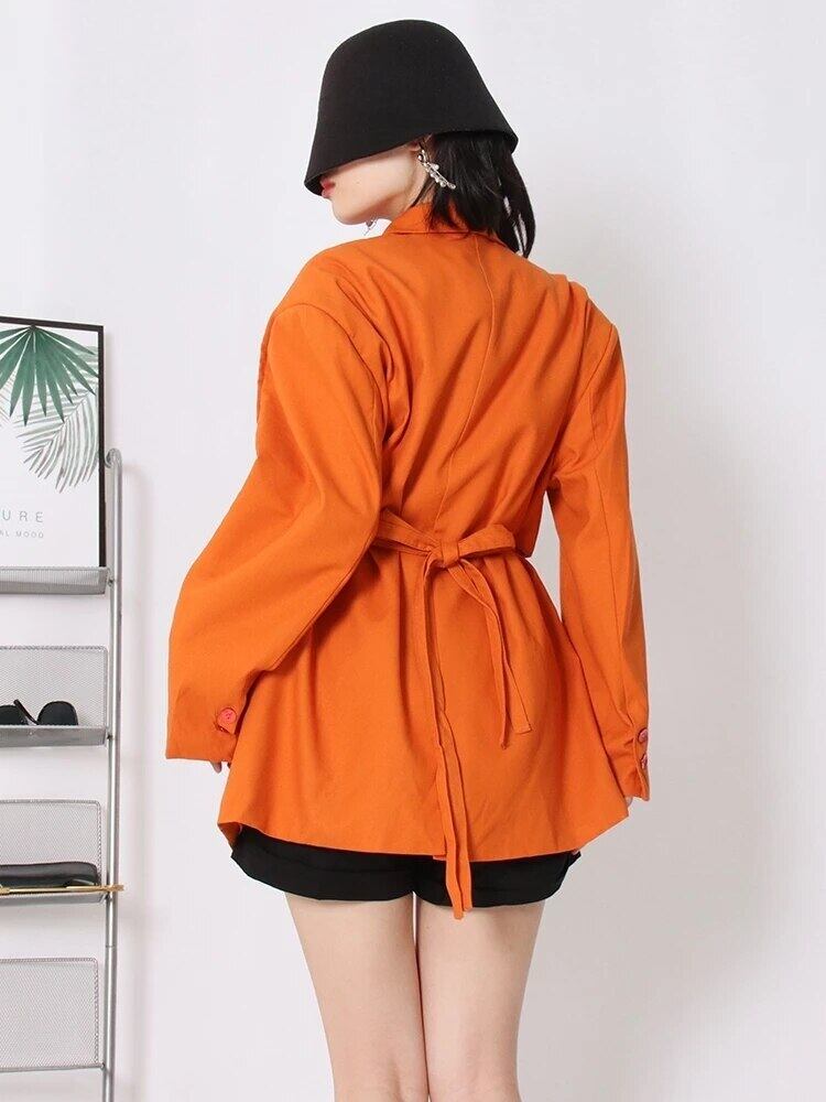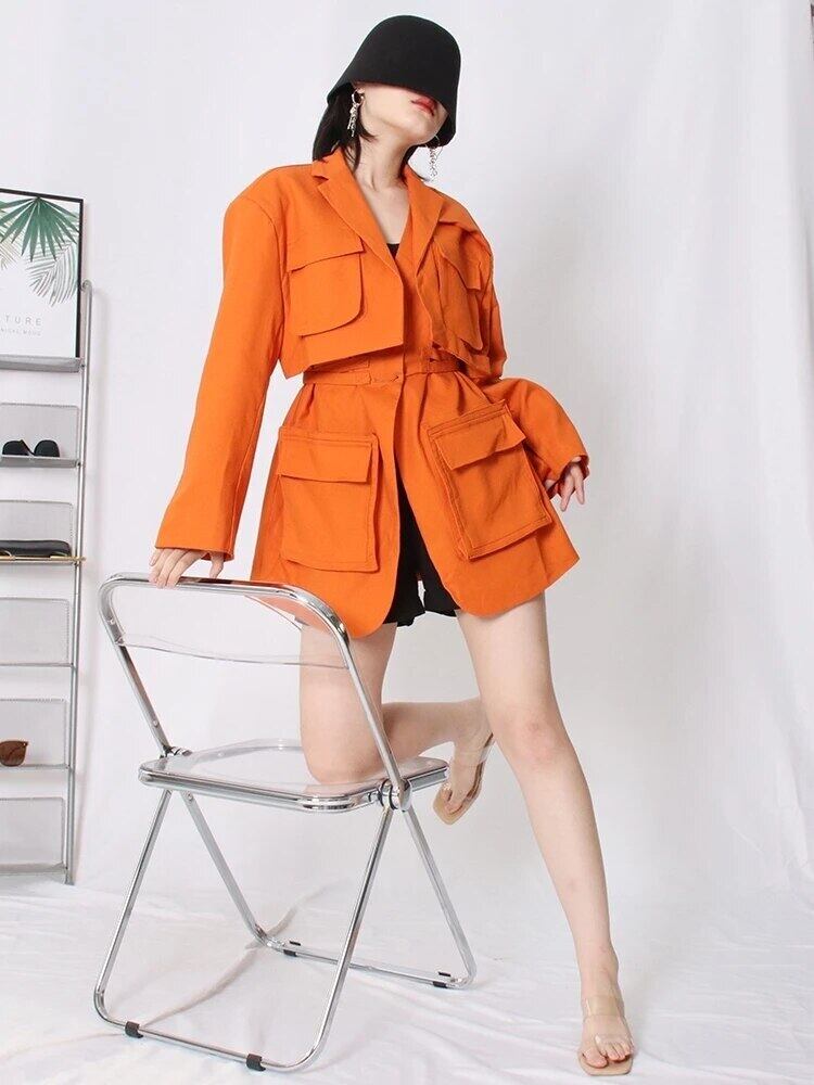 [EWQ] サファリスタイル ブレザー レディース ノッチドカラー ロング パッチワーク ポケット ブレザー 春服 ルーズコート スプリング 春物