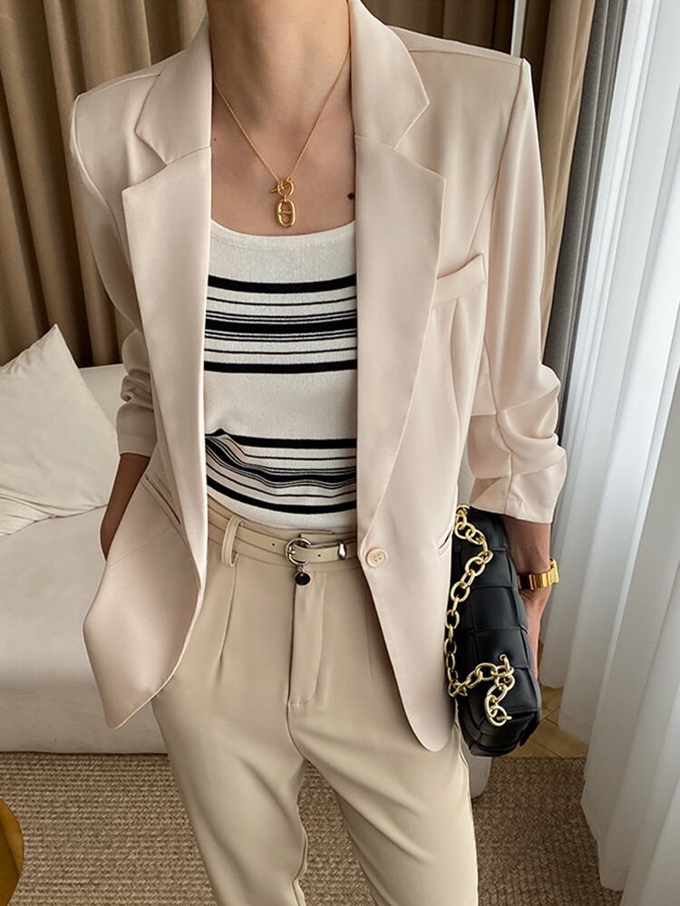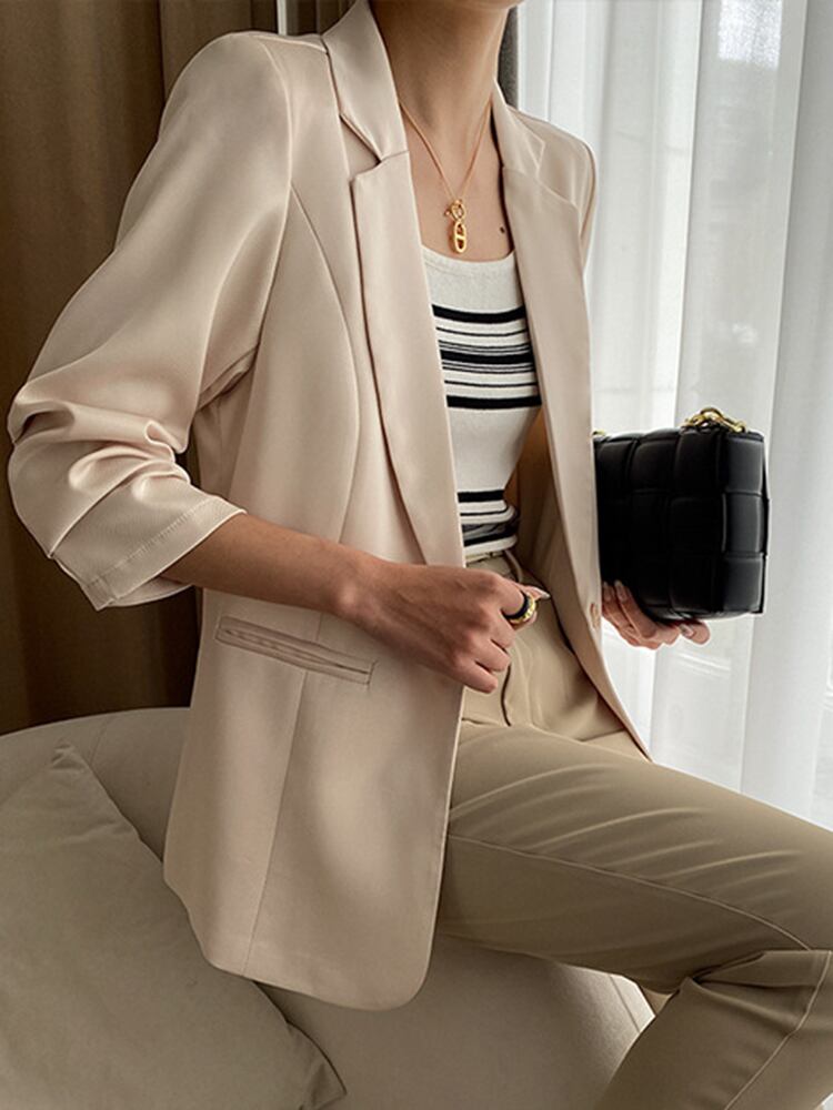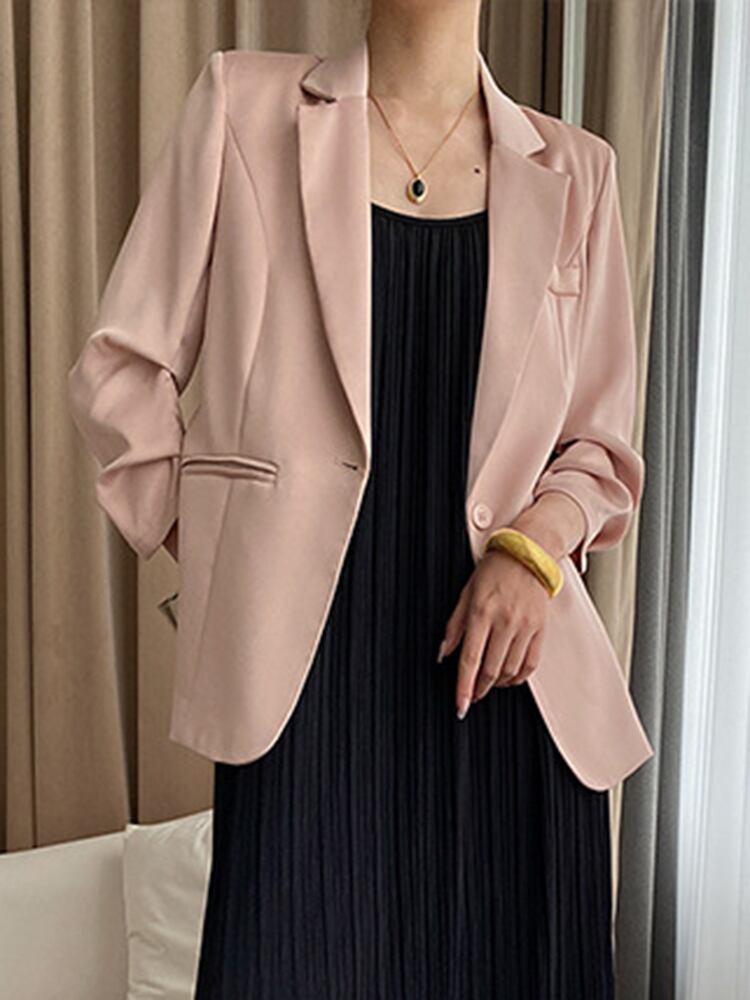 [EWQ] ワンボタンブレザーコート長袖プリーツオフィスレディ豪華スーツジャケット春秋潮トップ 16Y8517 ロング スプリング 春物 オータム 秋物 会社 学校 通勤や通学にも