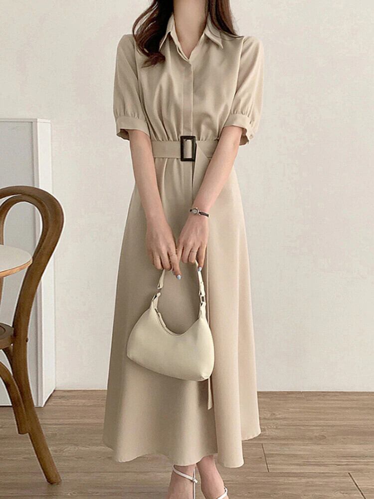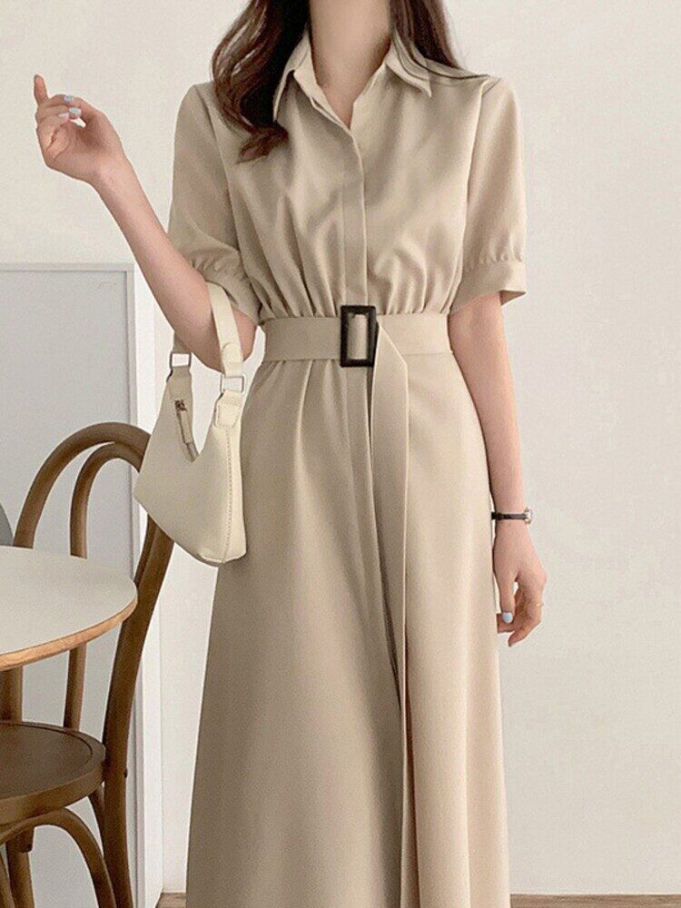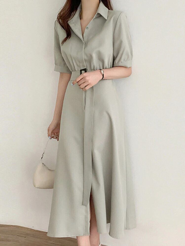 [EWQ] シングルブレストレースアップシャツドレス半袖ラペルドレス夏潮 Vestidos 16Y1565 ショート ハーフスリーブ サマー 夏物