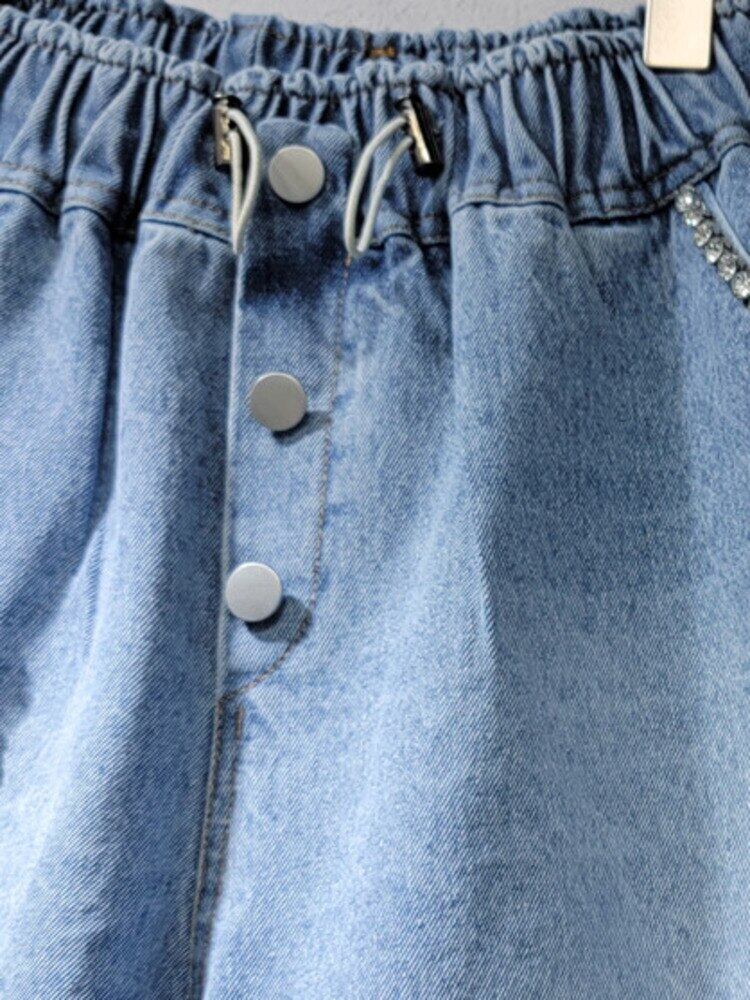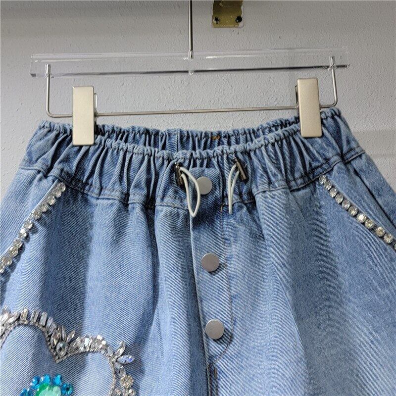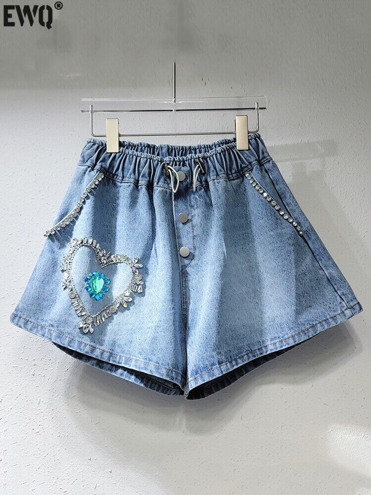 [EWQ] ラブダイヤモンド巾着デニムショーツポケット弾性 Wasit ストリートショートジーンズ夏潮服 6Y8273 エラスティック 伸縮 サマー 夏物 ブルマー