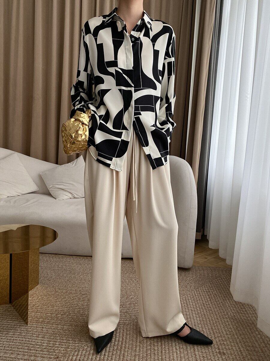 [EWQ] くるみボタン レディース シャツ ゆったり カジュアル 長袖 コントラストカラー ブラウス トップス 春潮 トップス ロング レッド スプリング 春物