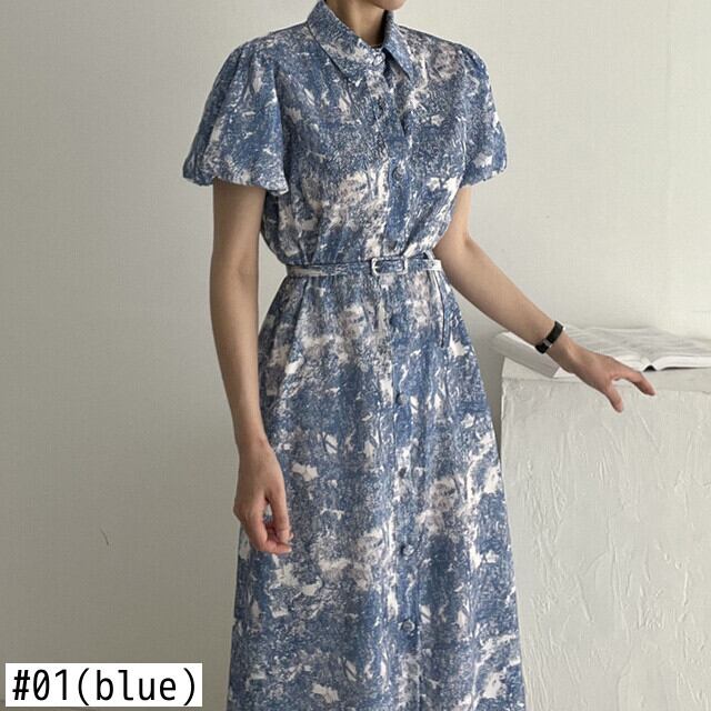 [EWQ] プリント レースアップ ドレス ラプル コントラスト カラー パフ スリーブ ドレス夏 Vestido 16Y8381 サマー 夏物