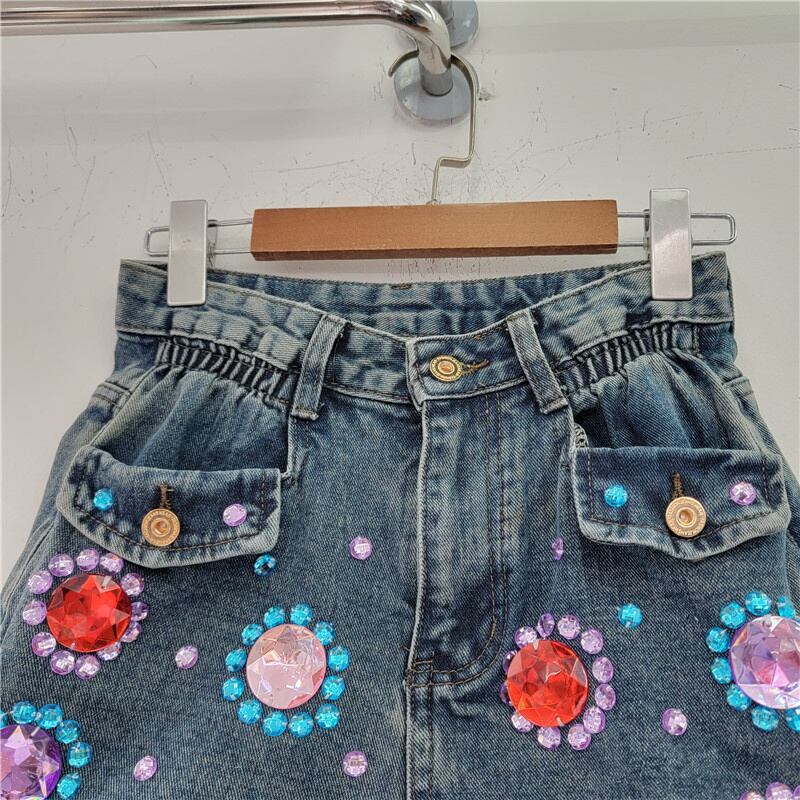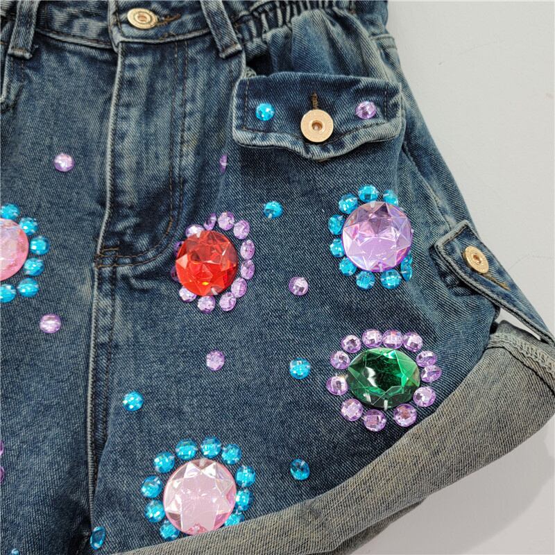 [EWQ] ダイヤモンド カラフルデニム ショーツポケット ウエスト ストリート コントラスト カラー夏潮ショーツ ジーンズ 8337 サマー 夏物 ブルマー