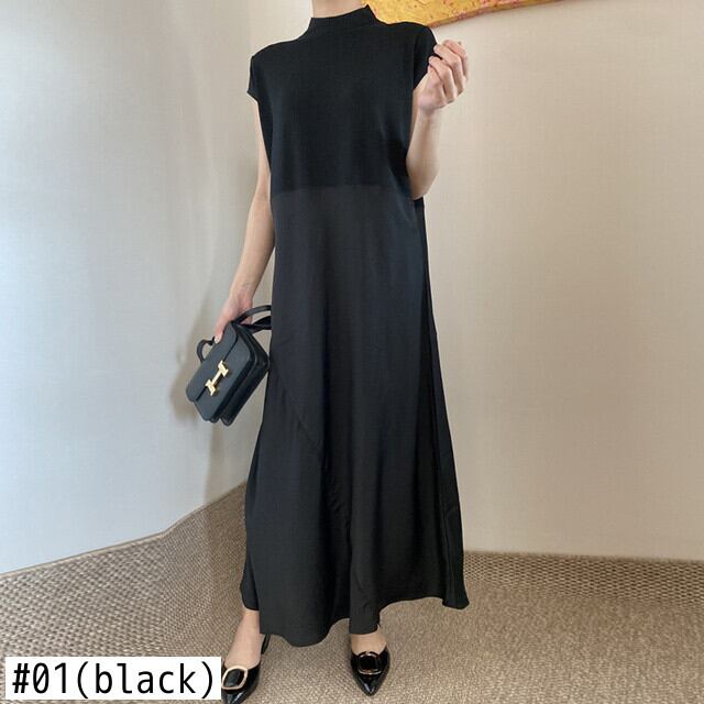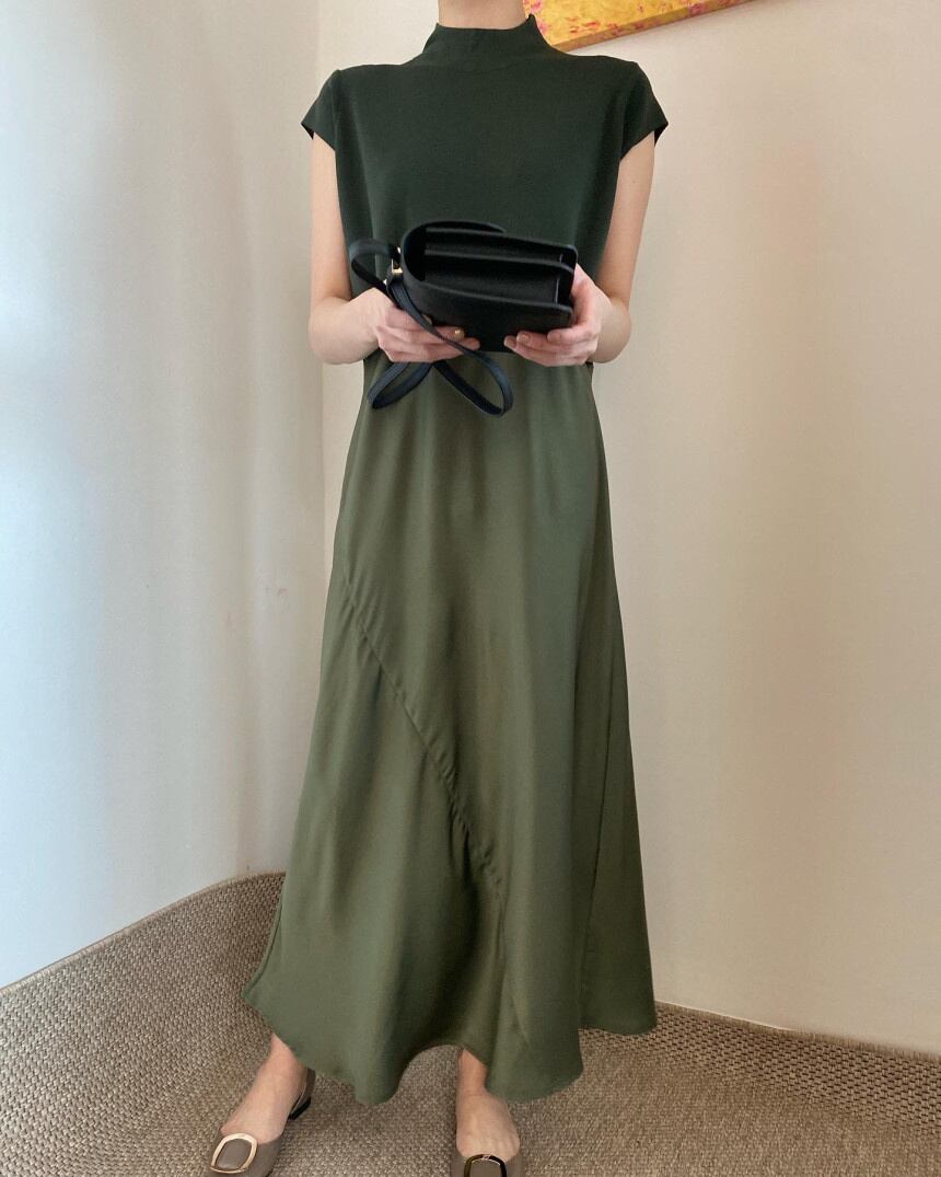 [EWQ] ハーフカラースプライスコントラストドレス半袖アケーブルグリーンパッチワークドレスサマータイド ショート ハーフスリーブ 夏物