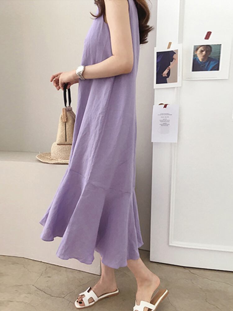 [EWQ] パープルベストドレスフリルスプライシングソリッドルーズカジュアルノースリーブドレスサマータイド Vestido 16Y8427 夏物 ソリッドカラー