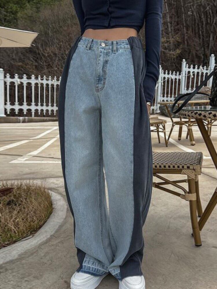 [EWQ] ウエスト スリム パッチワーク デニム パンツ ストリート ポケット スプライシング コントラスト カラー ジーンズ春夏ズボン スプリング 春物 サマー 夏物