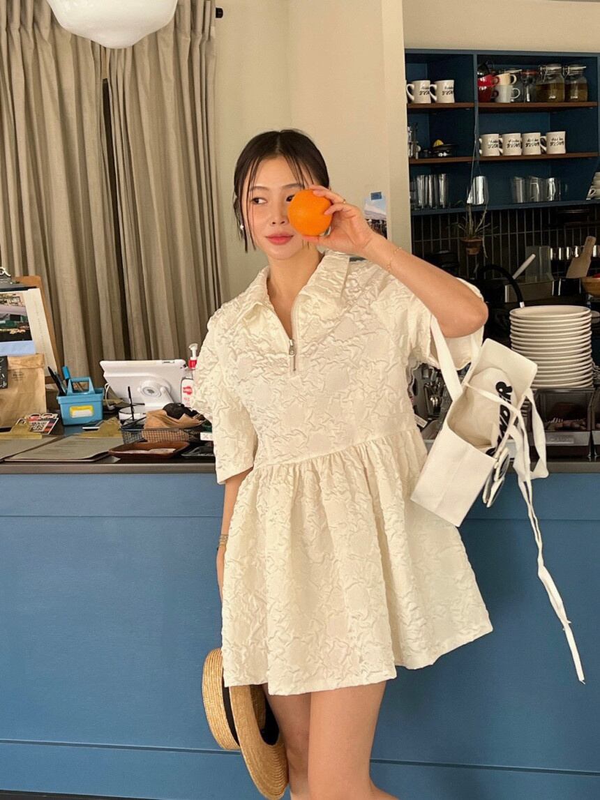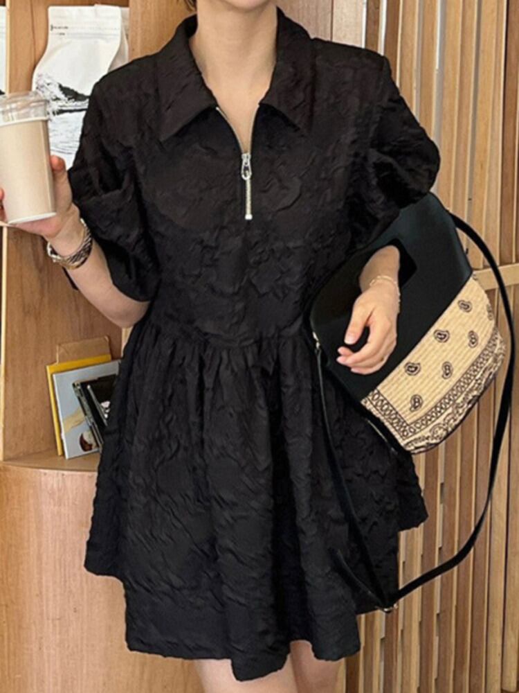 [EWQ] 半袖ジャカード ドレス フリル スプライシング ジッパー ミニ ドレス夏潮 Vestidos 16Y8537 ショート ハーフスリーブ サマー 夏物
