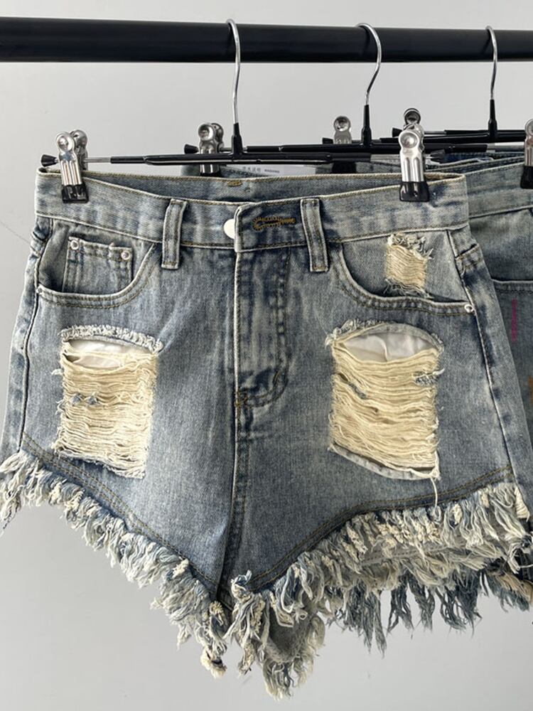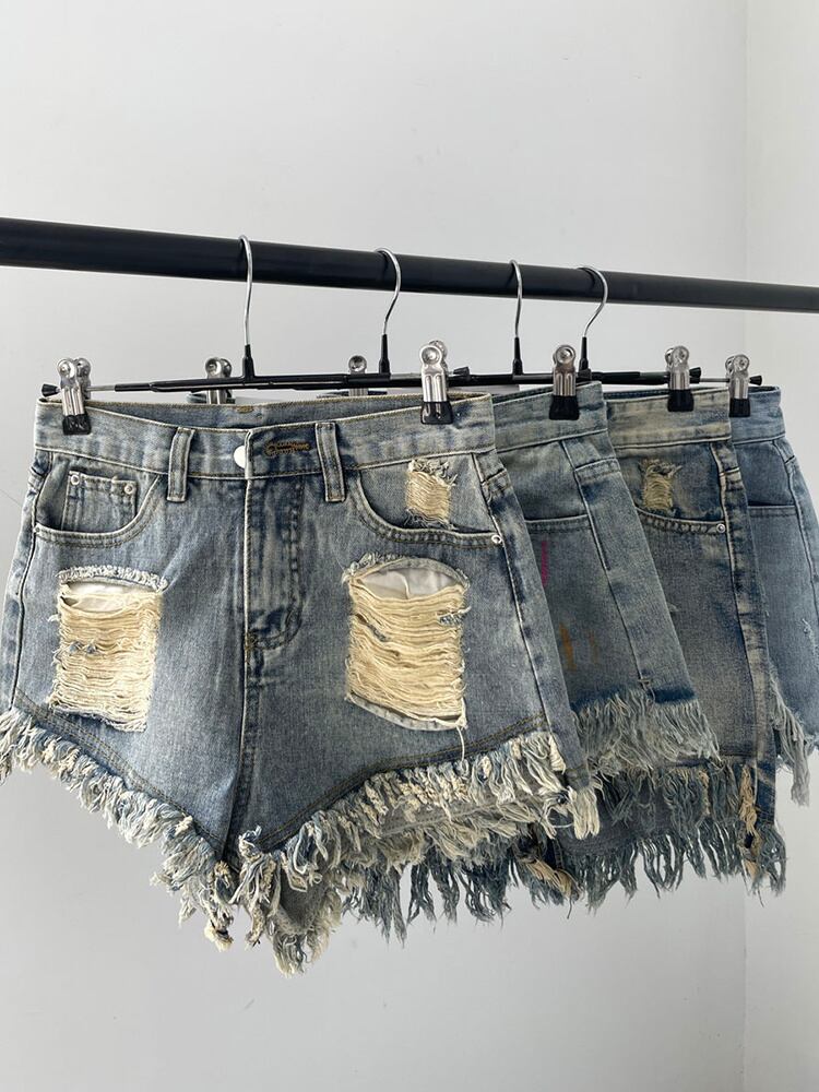 [EWQ] レディース ホールテ デニム ショートパンツ サマー ストリート ワーシット コントラストカラー パッチワーク ショートパンツ 夏物 ショーツ ブルマー