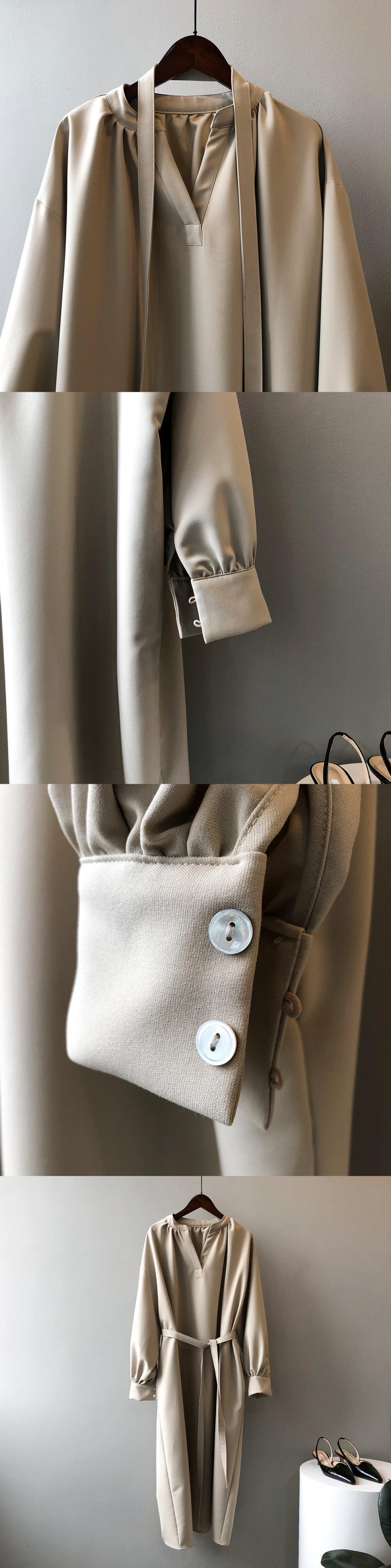 【EWQ】Vネック レースアップ シャツワンピース 春夏 シック ゆったりワンピース シンプル ストレート ゆったり レディース スプリング 春物 サマー 夏物 ドレス