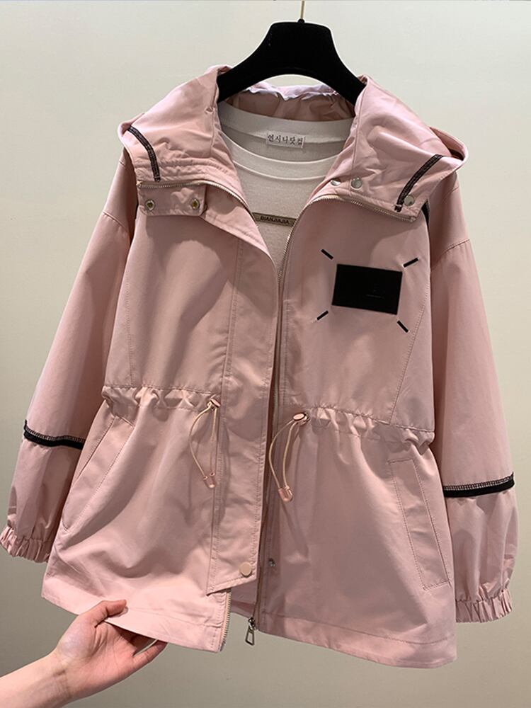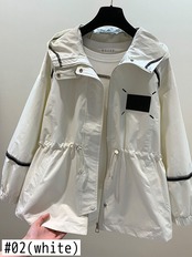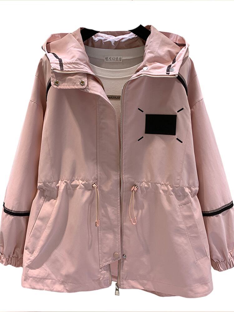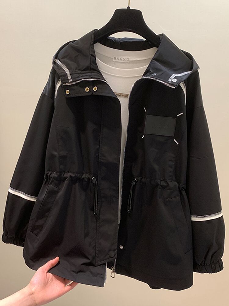 [EWQ] ジッパー コントラスト カラー ウインドブレーカー コート春秋潮巾着パッチワーク トレンチ ジャケット 6Y8369 スプリング 春物 オータム 秋物