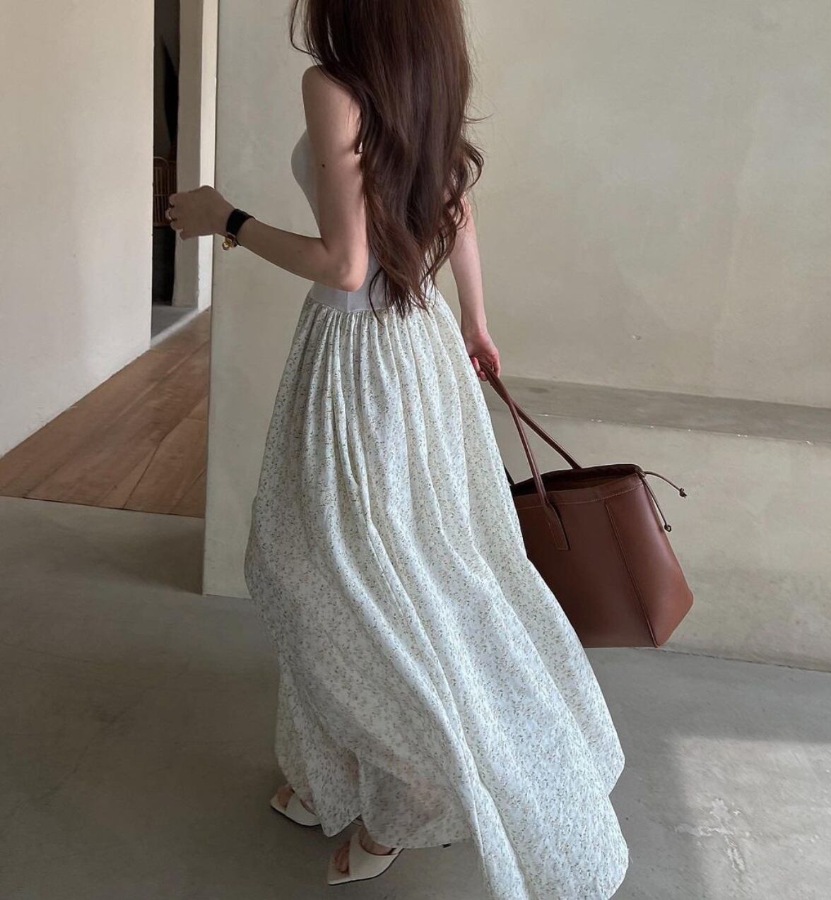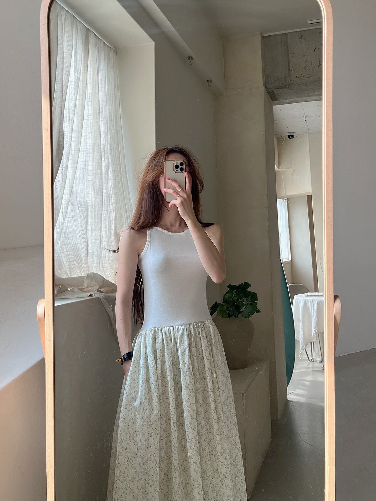 [EWQ] ノースリーブ プリーツ スプライス コントラスト ドレス スリム フィット シフォン パッチワーク ドレス夏潮 Vestidos サマー 夏物