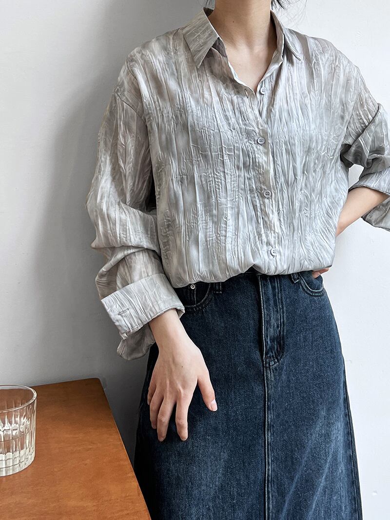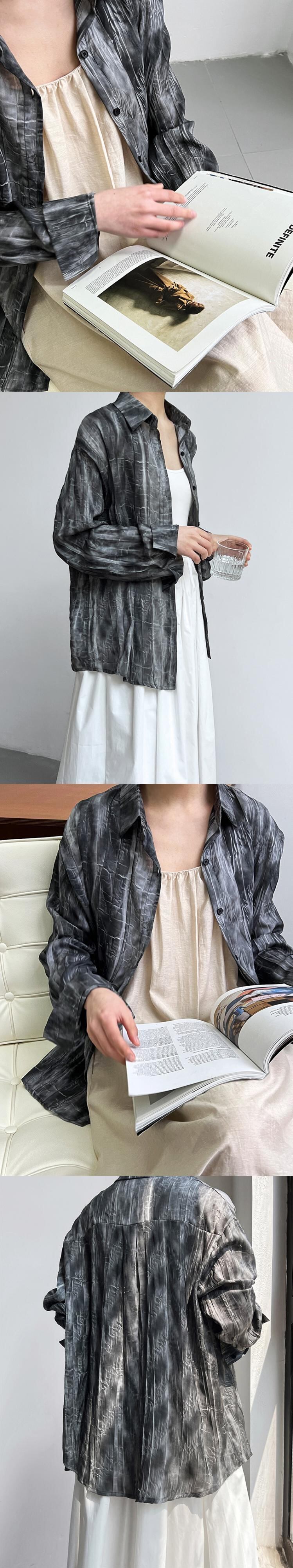 [EWQ] レディース タイダイ 薄手シャツ 長袖 コントラストルーズ カジュアル ブラウス シングルブレスト トップス 夏潮 ロング サマー 夏物