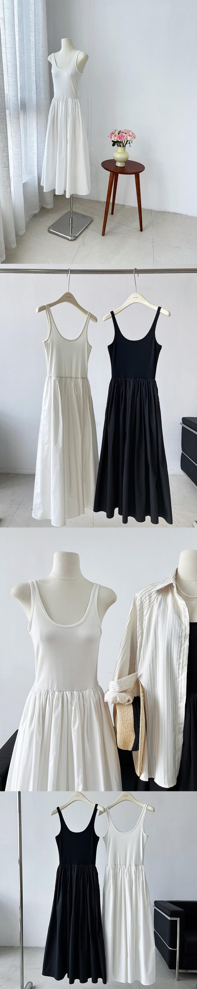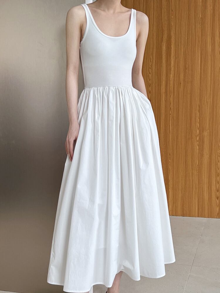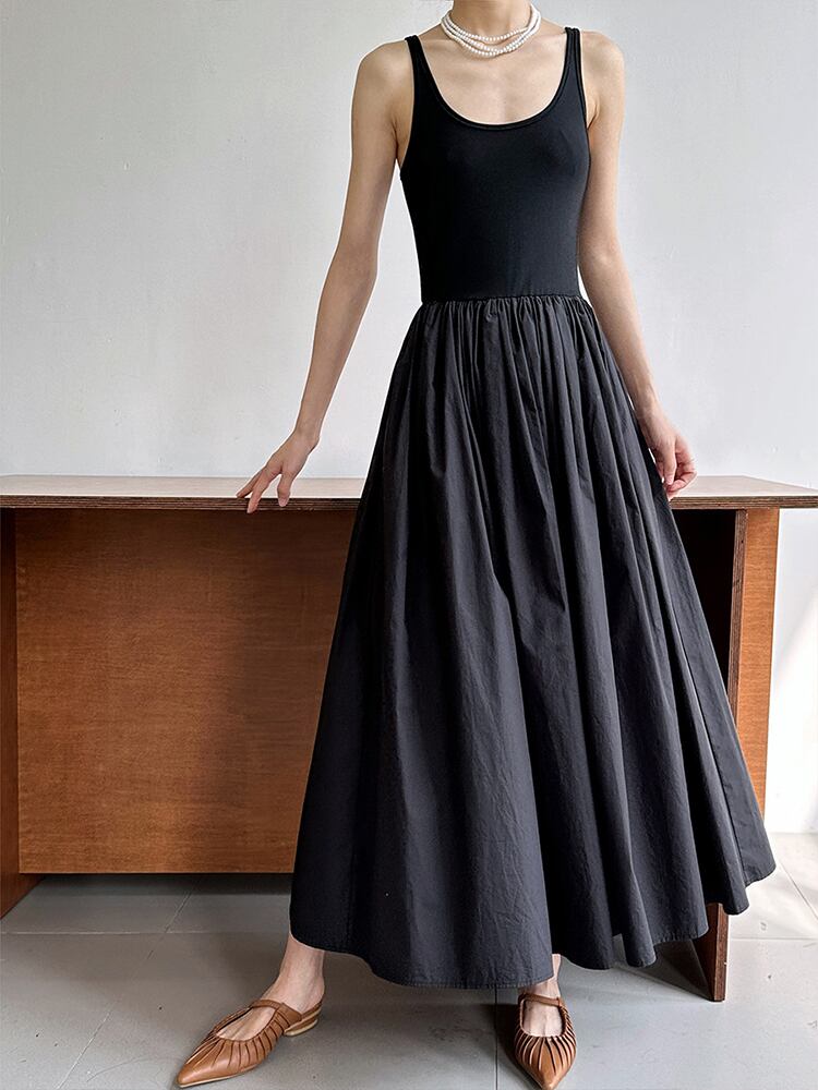 [EWQ] ニット スプライス スリング ドレス ノースリーブ無地スリム フィット マキシ ドレス夏潮 Vestido サマー 夏物 ソリッドカラー