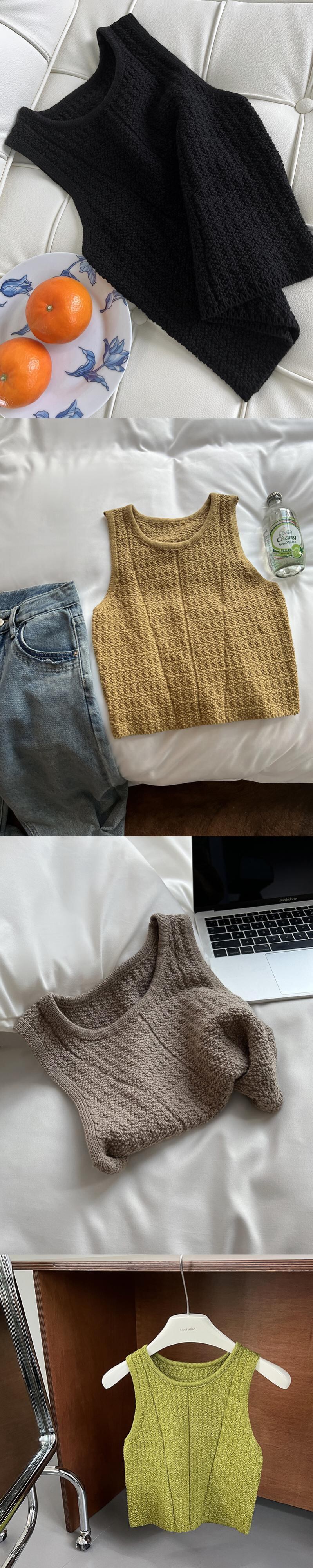 [EWQ] ニット ベスト ジャカード O ネック グリーン スリム フィット ノースリーブ タンクトップ サマー タイド トップス 夏物 Oネック