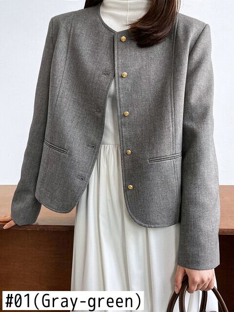 [EWQ] シングルブレストジャケット長袖因果 O ネックショートジャケットコート春秋潮トップ 16Y8602 ロング スプリング 春物 オータム 秋物 Oネック