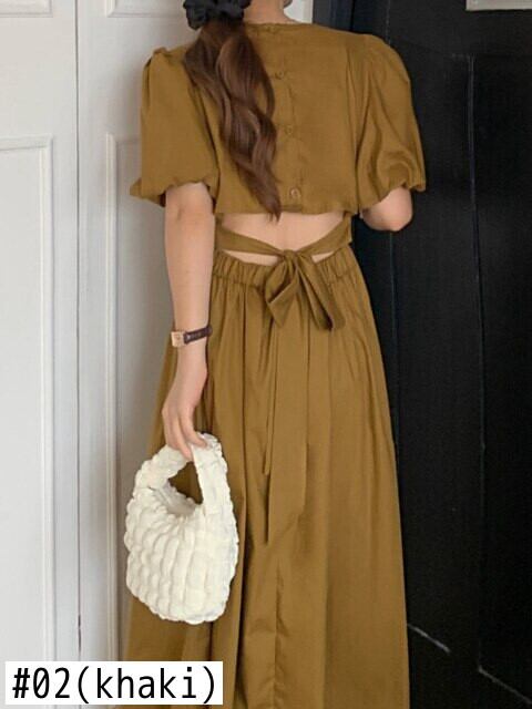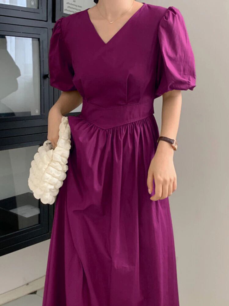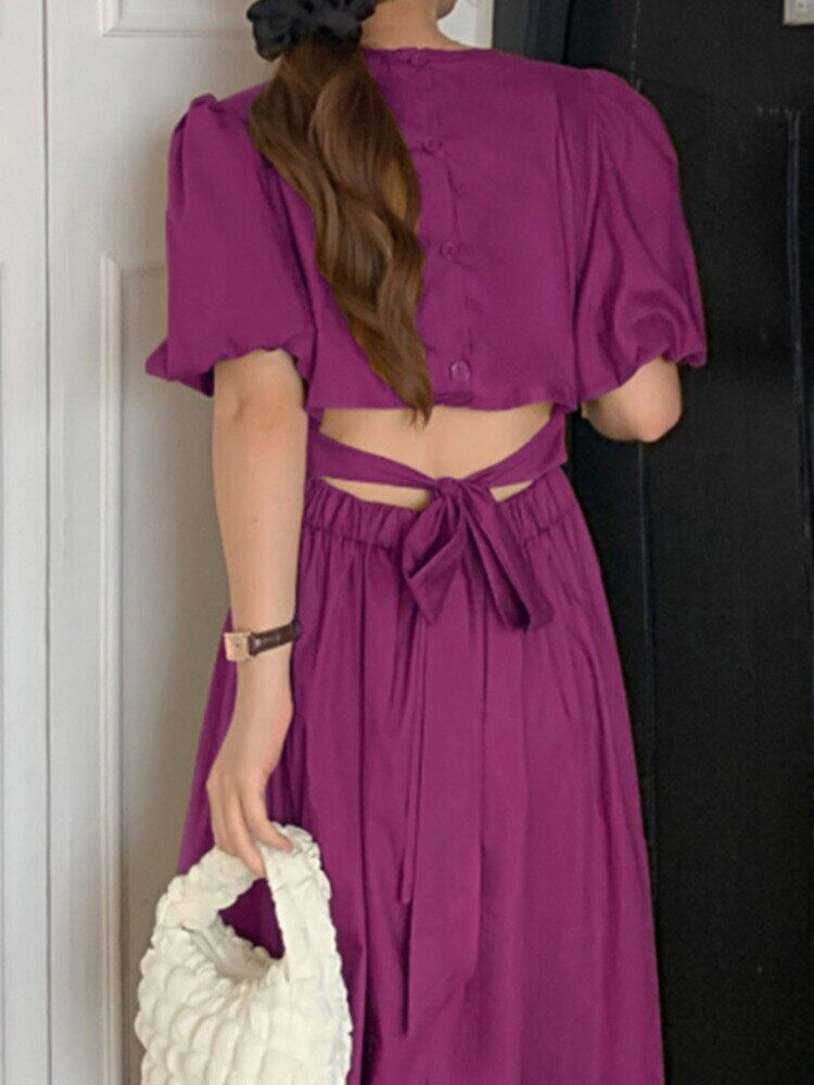 [EWQ] パープル バック カットアウト レースアップ ドレス薄いバブル スリーブ気質ドレス夏潮 Vestido 6Y8641 サマー 夏物