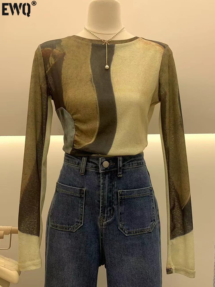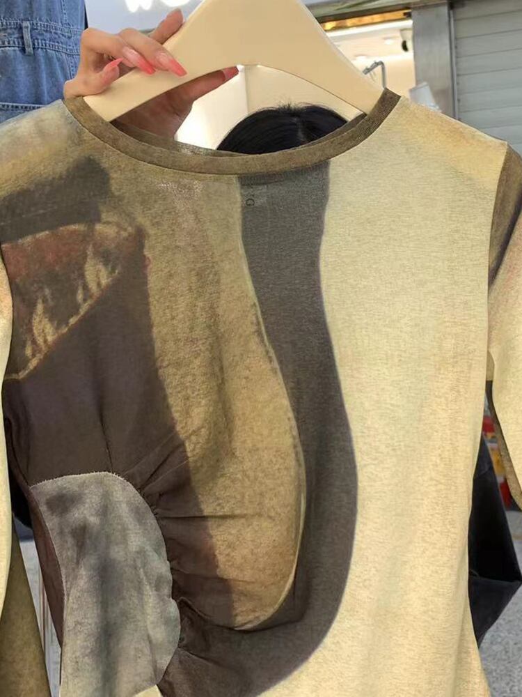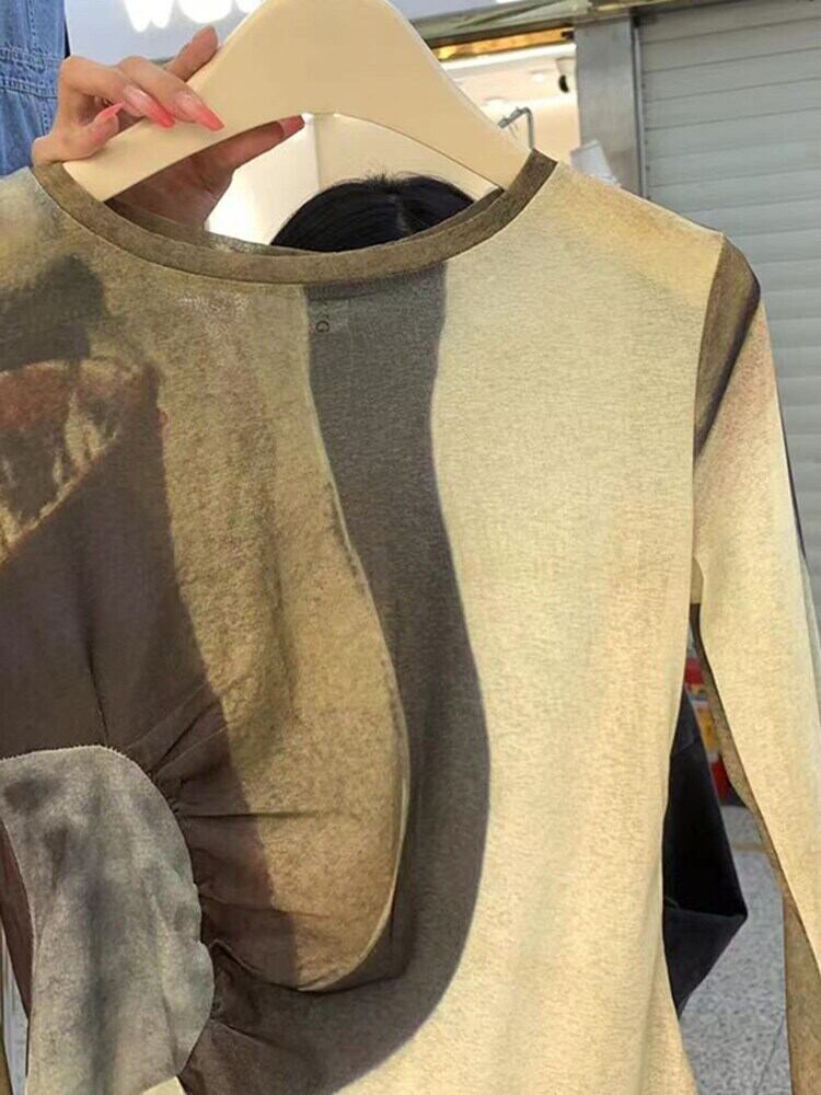 [EWQ] コントラストカラー長袖 Tシャツ O ネック因果弾性 Tシャツトップ春潮特大 Tシャツ 668 ロング エラスティック 伸縮 スプリング 春物 Oネック