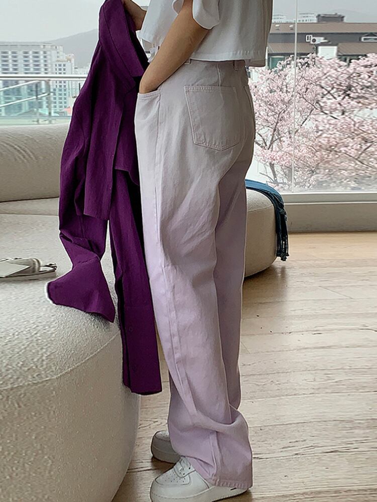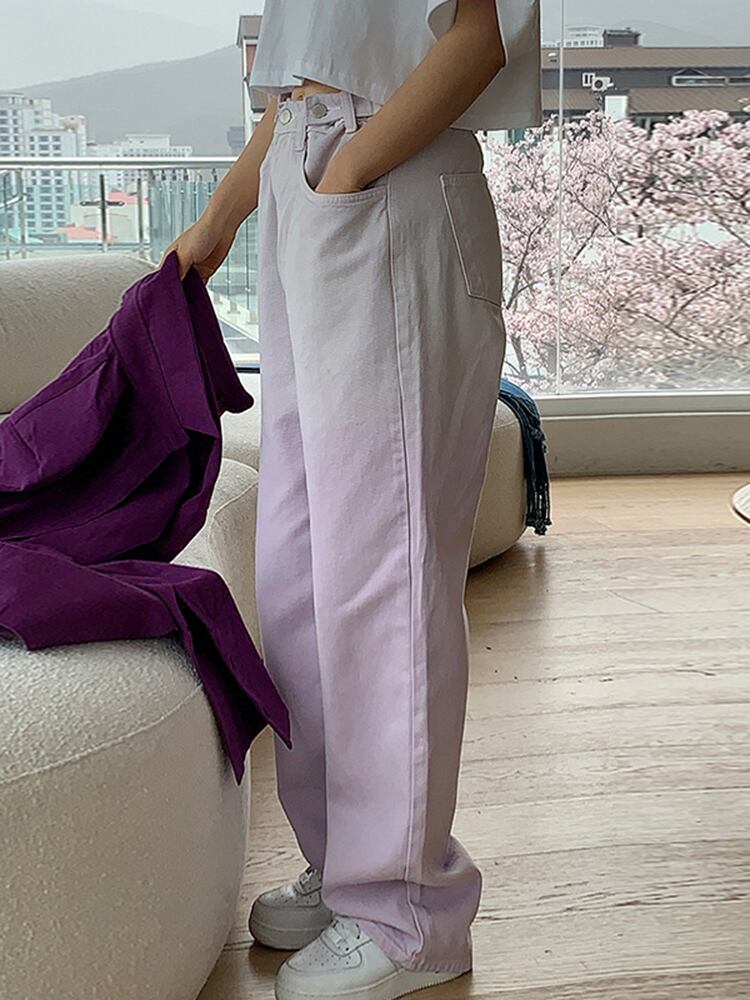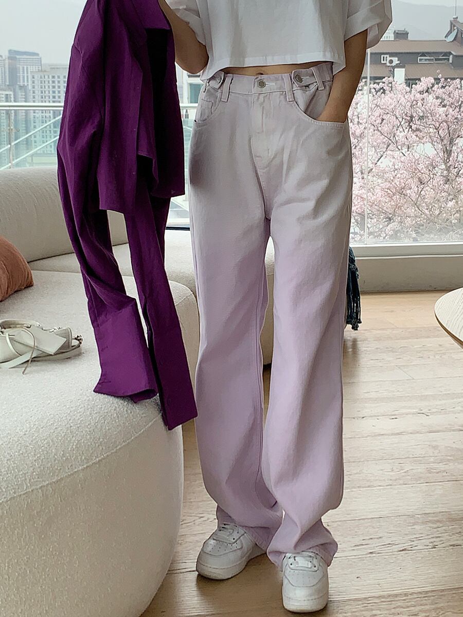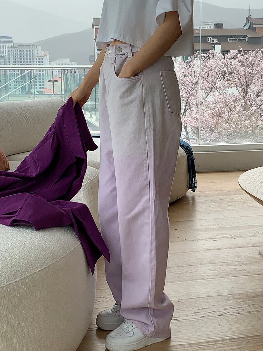 [EWQ] グラデーション ワイドレッグ ジーンズウエスト コントラスト ポケット ストリート デニム ズボン夏潮 16Y8616 サマー 夏物 ワイドパンツ