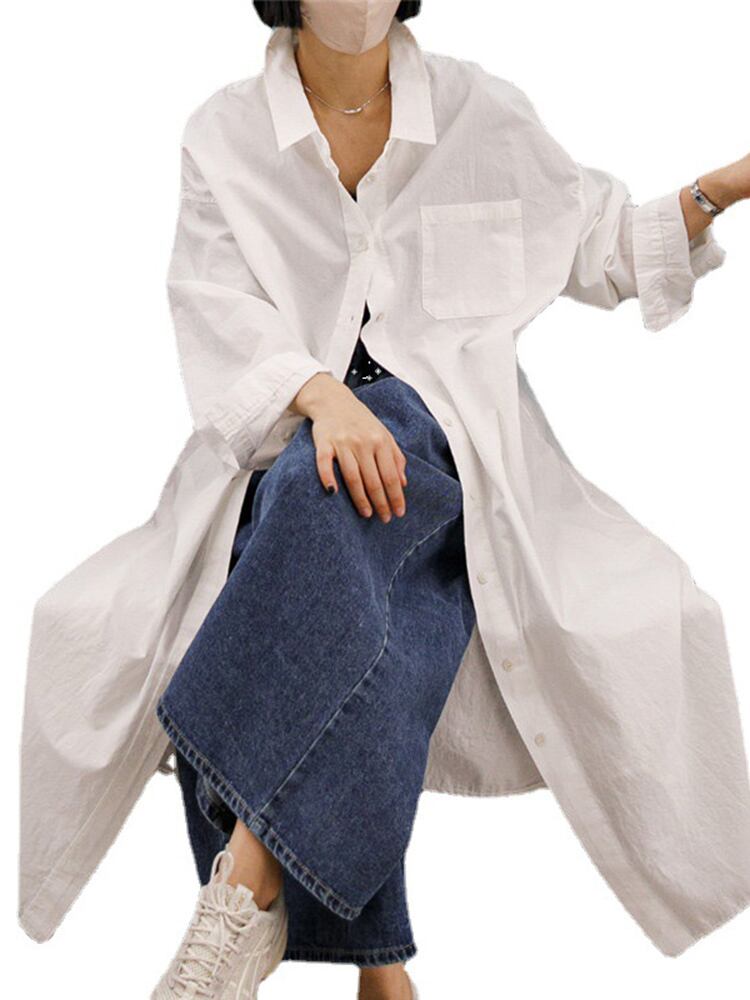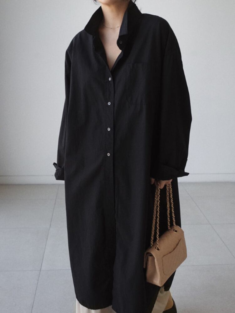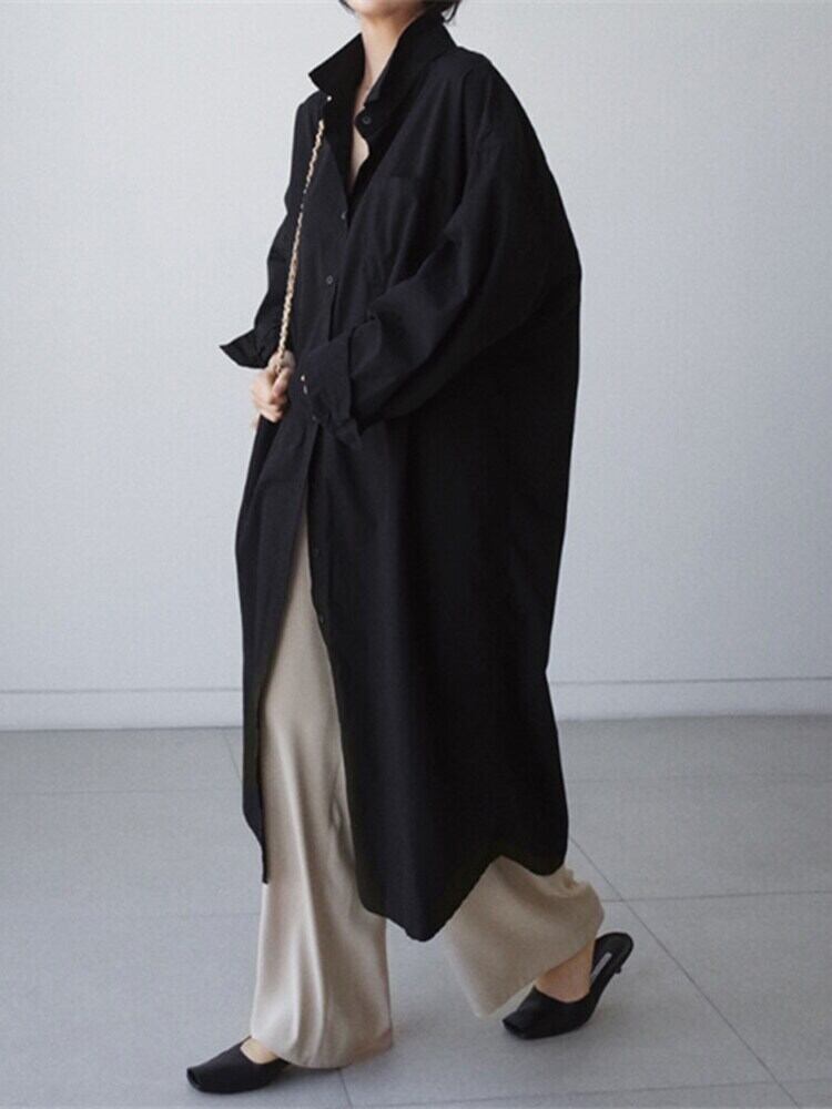 [EWQ] 不規則スプリット シャツ ドレス特大シングル ブレスト無地ロング ドレス春潮 Vestido ローブ スプリング 春物 ソリッドカラー