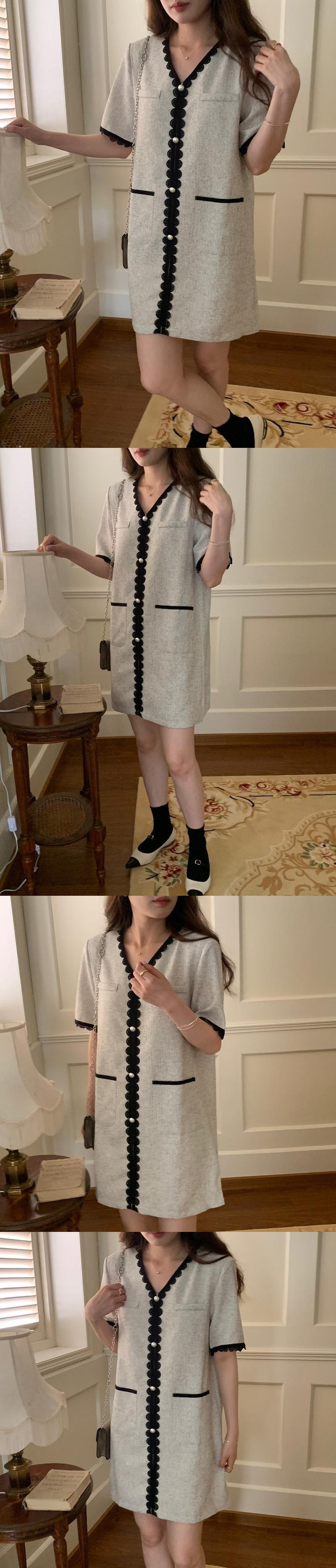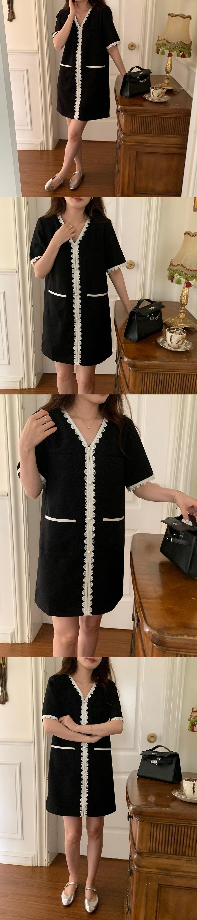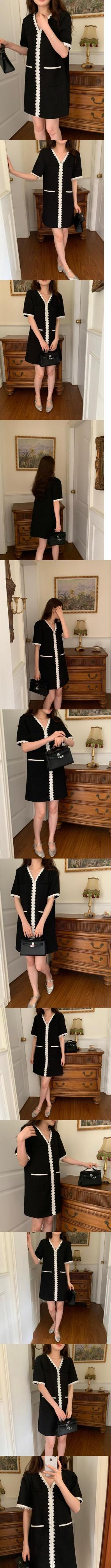 [EWQ] V ネック コントラスト ドレス スプライシング レース ルーズ 半袖 ミニ ドレス 夏潮 Vestido Y8630 ショート ハーフスリーブ サマー 夏物 Vネック