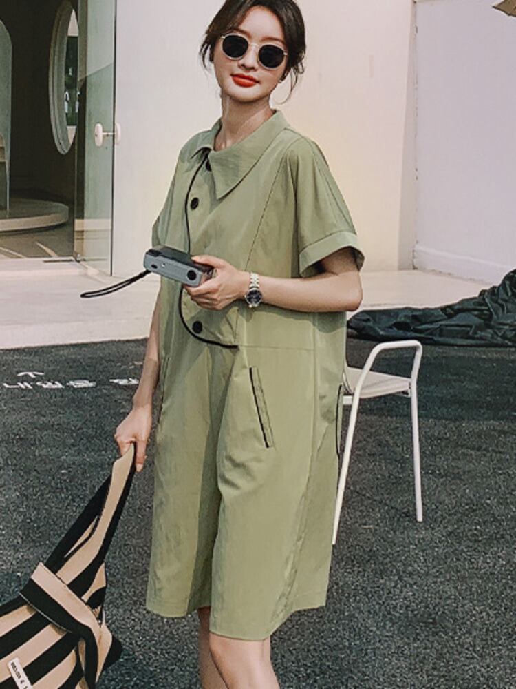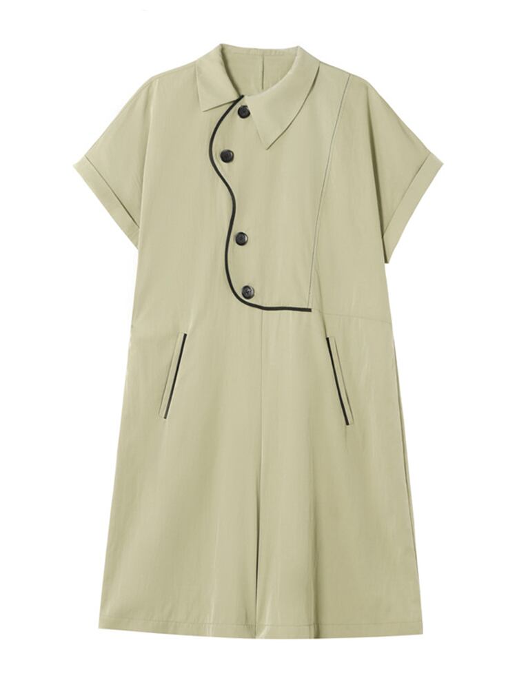 [EWQ] コントラストカラープレイスーツウエスト半袖サマータイドシングルブレストワイドレッグロンパース 6Y8558 ショート ハーフスリーブ 夏物 ワイドパンツ