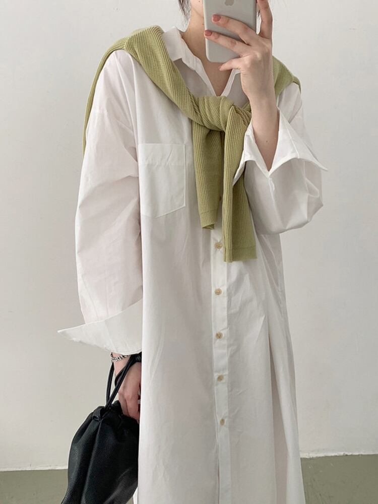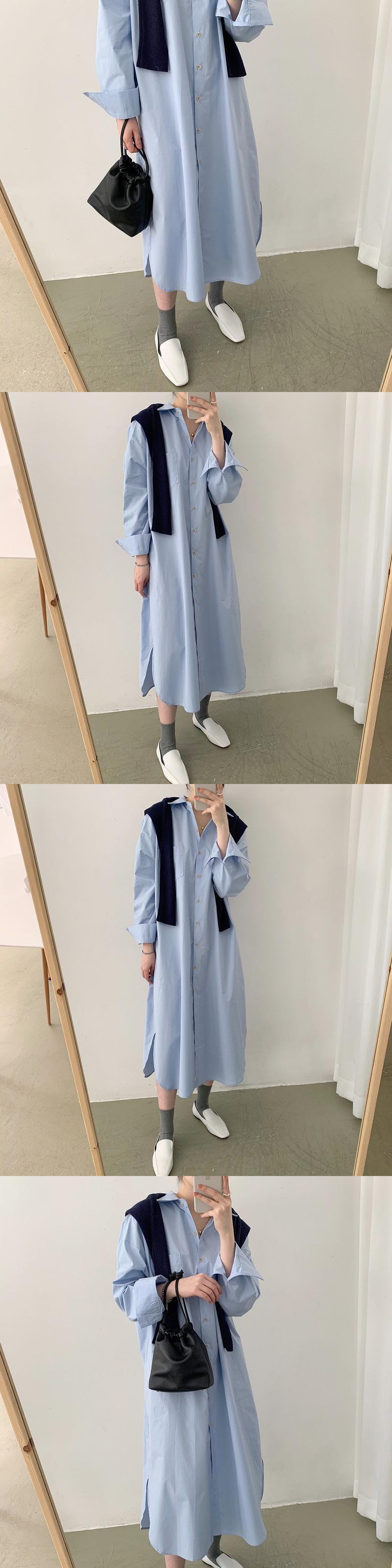 【EWQ】シンプルターンダウンカラーシャツワンピース ストレート カジュアル レディース オールマッチストレート ブルー サマー 16Y1317 夏物