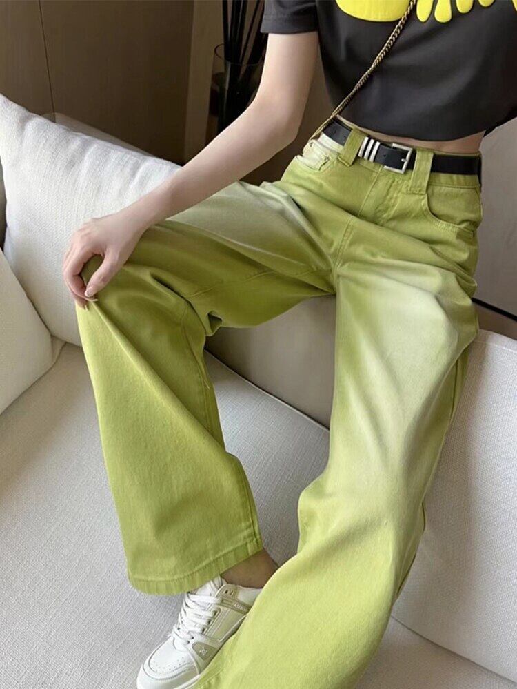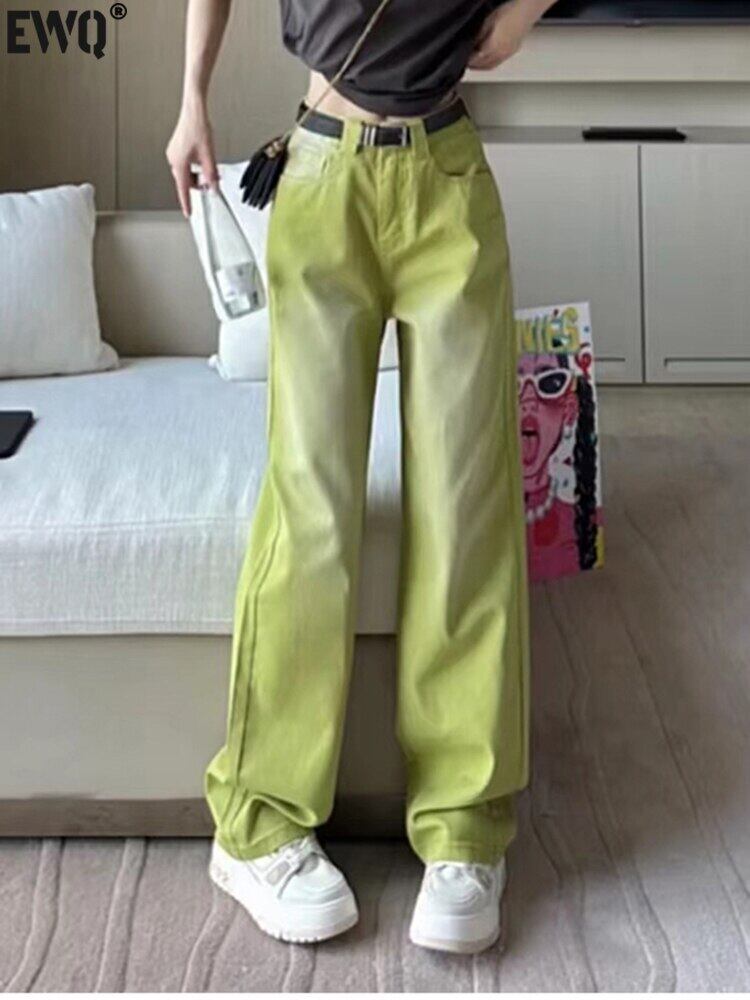 [EWQ] グリーン グラデーション ウエスト デニム パンツ春夏タイド ポケット ストリート ジーンズ ワイドレッグ ズボン スプリング 春物 サマー 夏物 ワイドパンツ