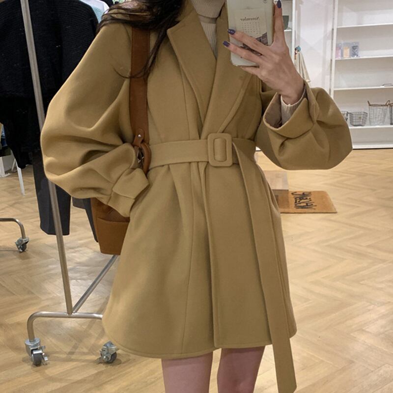 【EWQ】長袖 ミニマリスト ショート ウール トップス ブラウン ウールコート オーバーコート シックコート 春 冬 ロング スプリング 春物 ウィンター 冬物