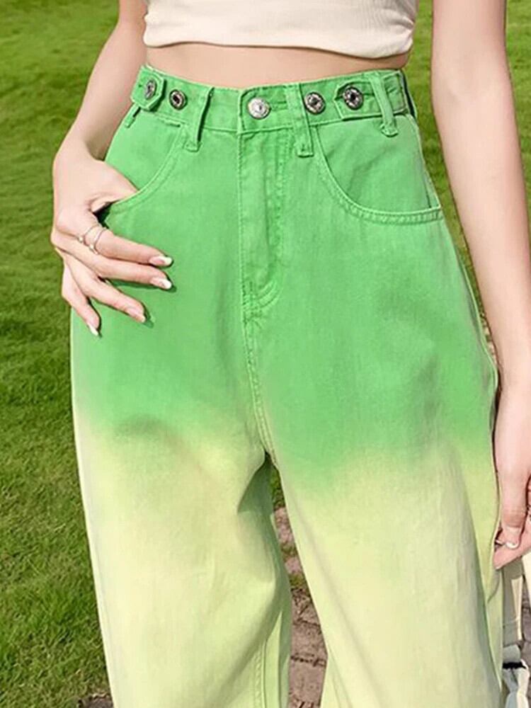 [EWQ] グラデーションウエストジーンズストリートワイドレッグデニムパンツポケット春夏潮オールマッチ服 スプリング 春物 サマー 夏物 ワイドパンツ