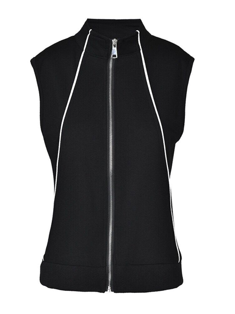 【EWQ】スタンドカラー ベスト ジッパー ノースリーブ 無地 トップス 万能 キレイめ レディース 夏 サマー 夏物 ソリッドカラー