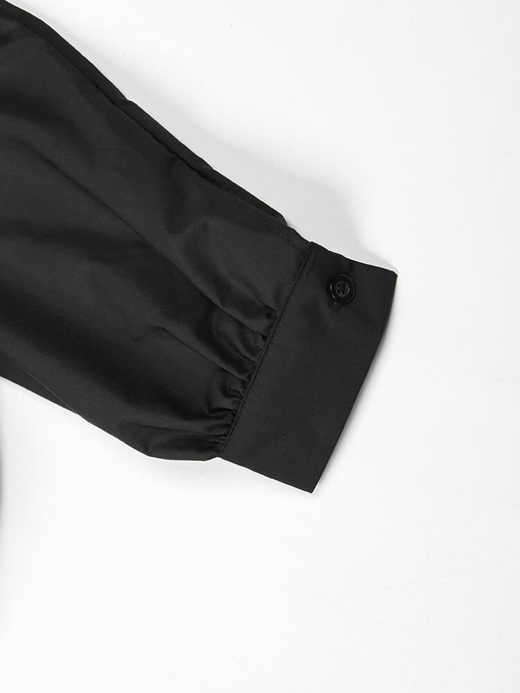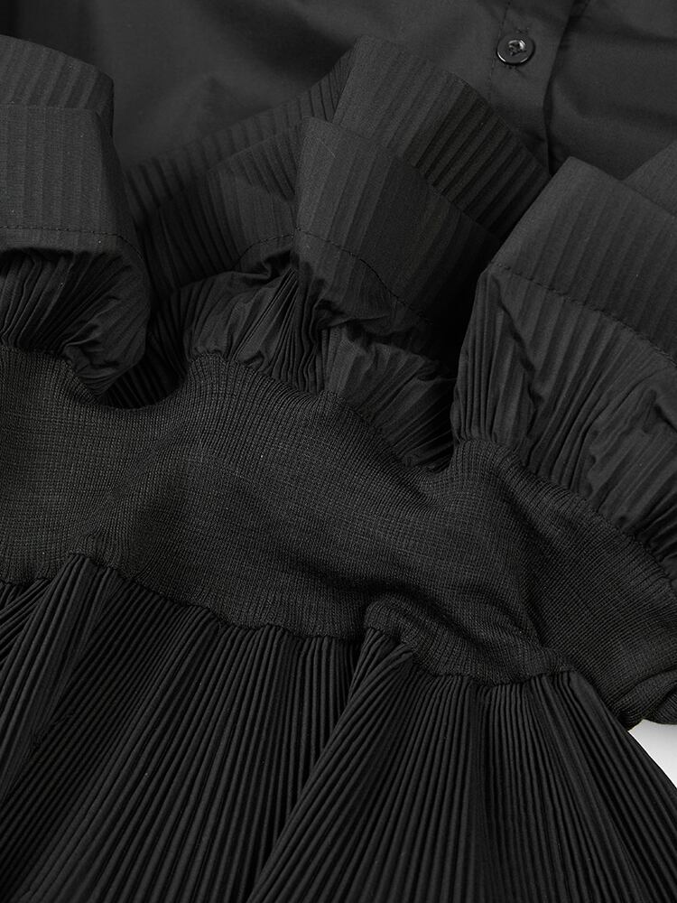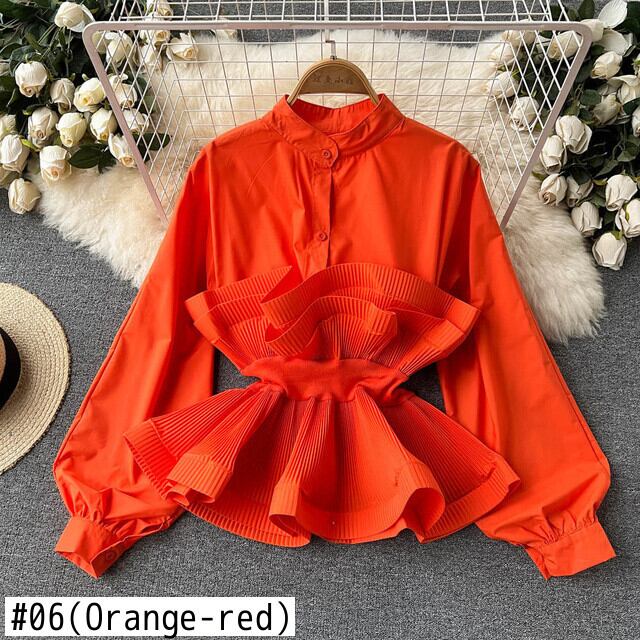 [EWQ] レディース パフスリーブ シャツ プリーツ フリル ブラウス パッチワーク 気質 Y2k トップ スリム ウエスト シャツ 甘春 大人ガーリー スウィート キュート カジュアル スプリング 春物