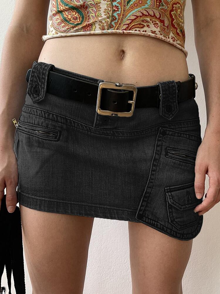 [EWQ] ストリートローウエストデニムスカート非対称ポケットグラデーションミニスカート夏潮オールマッチ服 Y8572 サマー 夏物