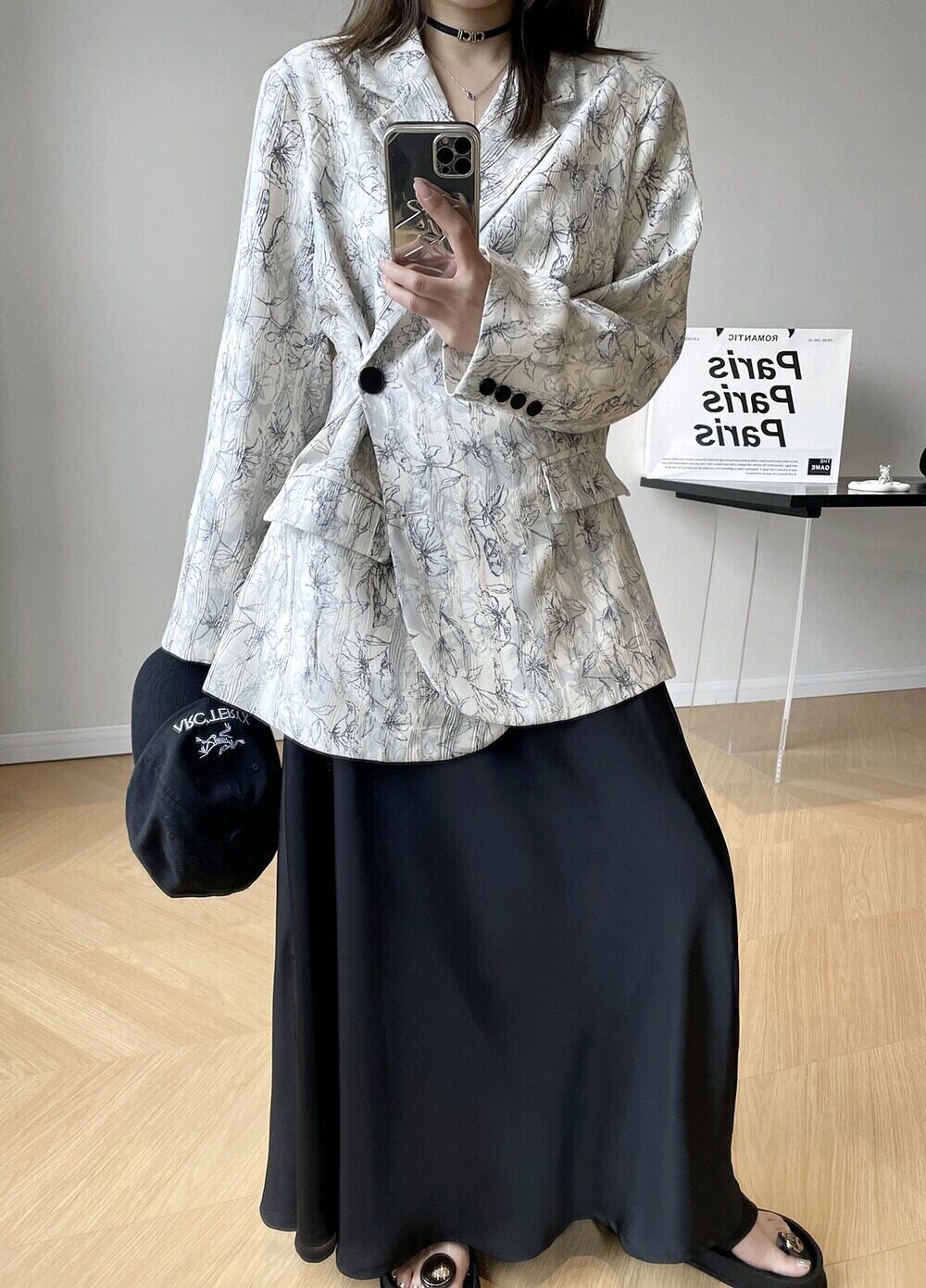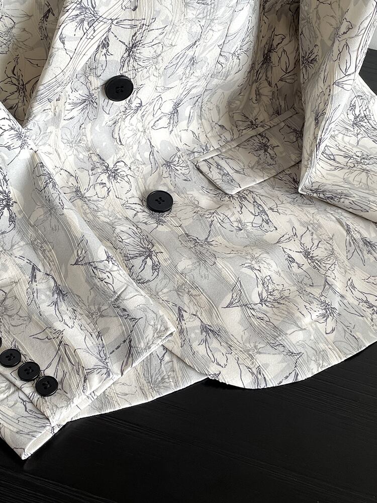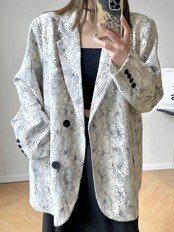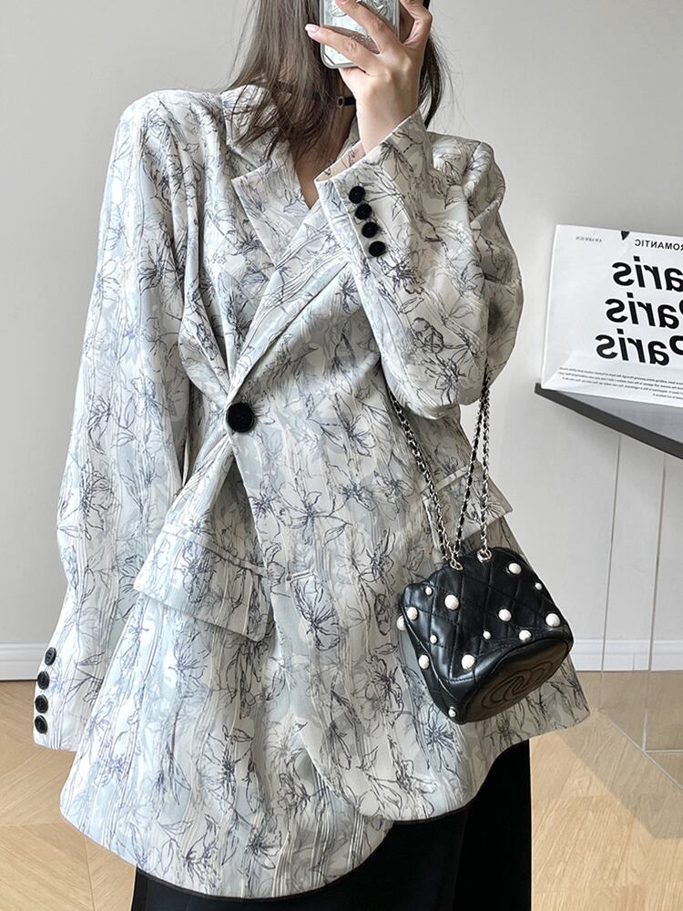 [EWQ] 2 つボタン プリント ブレザー コート長袖コントラスト カラー オフィス レディ スーツ ジャケット春潮ポケット トップ 8683 ロング スプリング 春物 会社 学校 通勤や通学にも