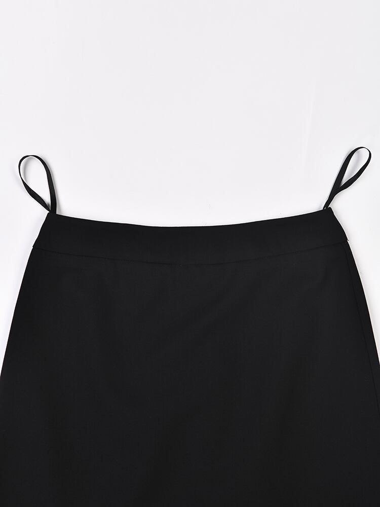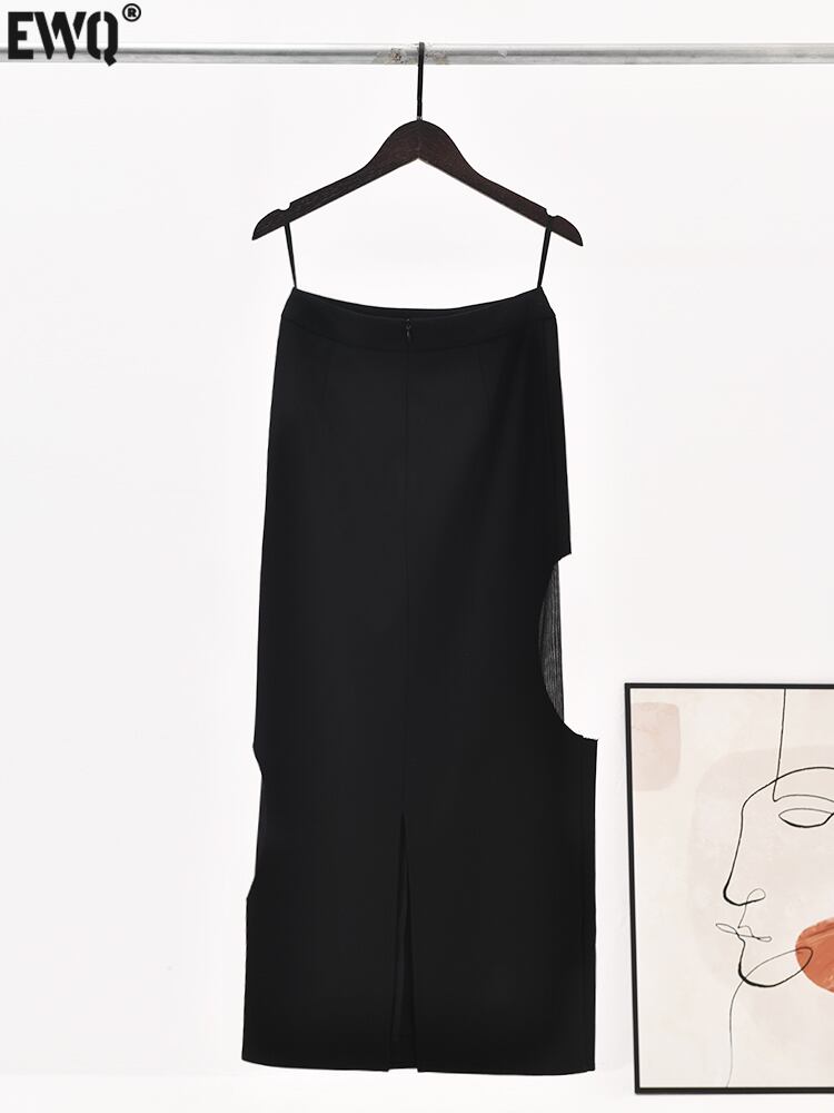 【EWQ】ウエストAライン メッシュステッチ レディース 黒 ハーフスカート ペレ夏 ブラック サマー 夏物