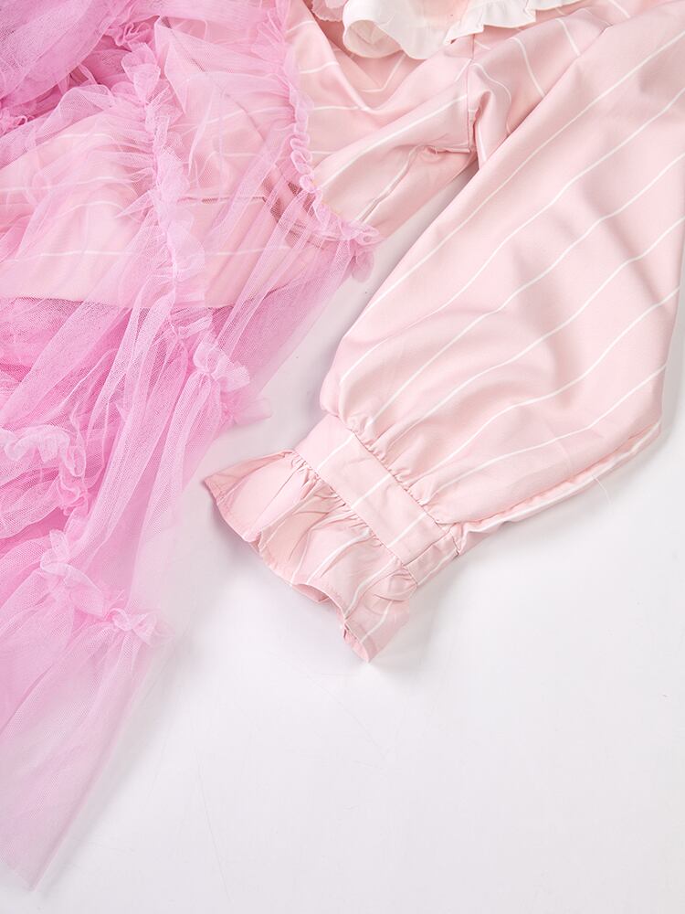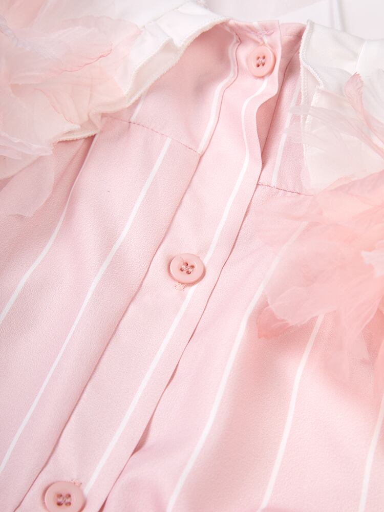 [EWQ] コントラストカラーシャツメッシュスプライシングシングルブレストブラウストップ春潮長袖優しい気質トップ ロング スプリング 春物